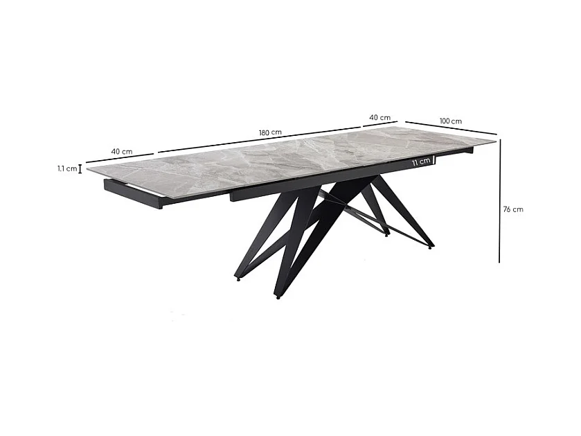Table extensible 180/260 cm céramique marbré laqué pied géométrique - DAKOTA 03