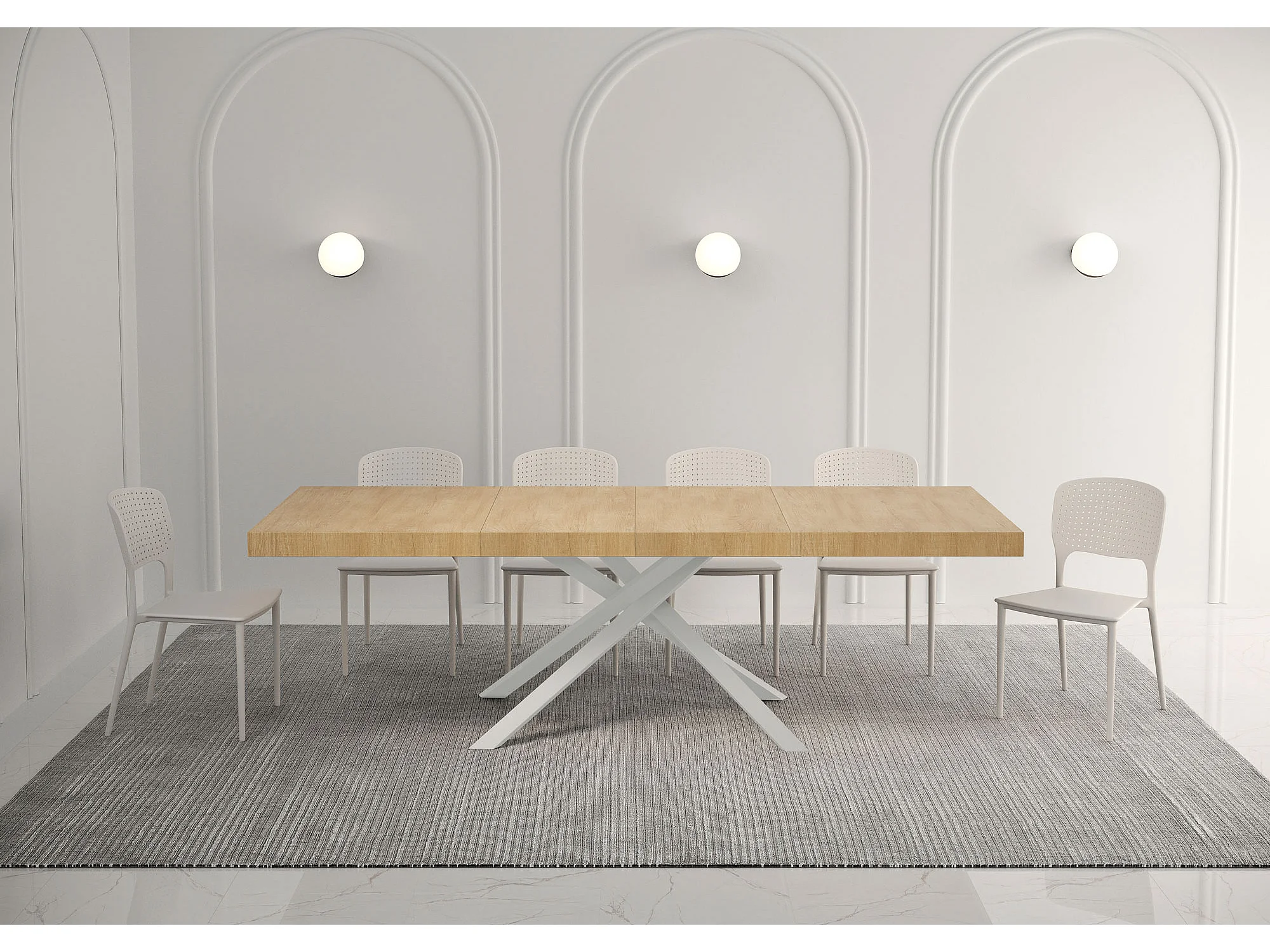 Table extensible 140/244x90 cm Karida Premium chêne nature pieds blancs