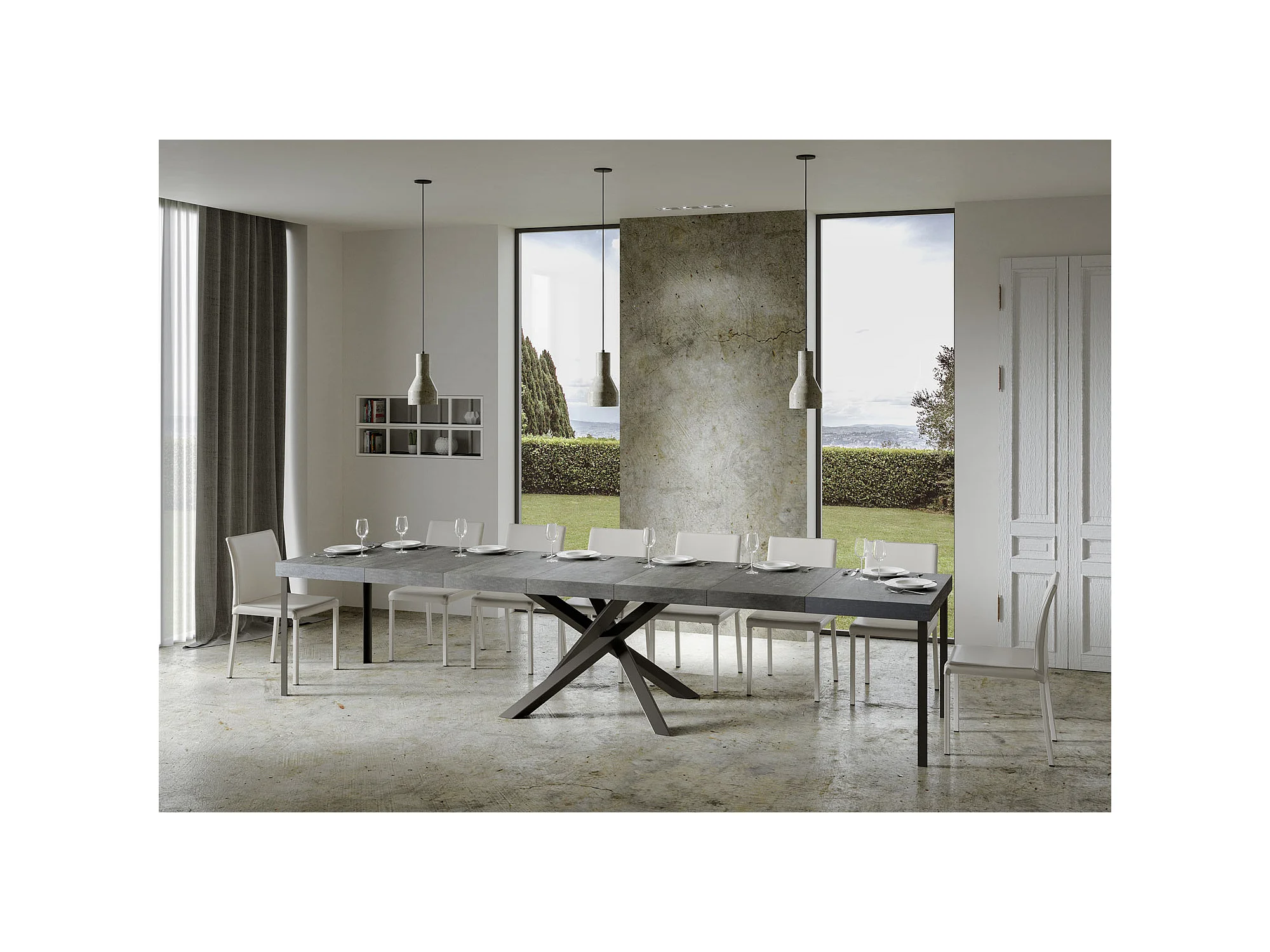 Table extensible 90x160/420 cm Volantis Premium Gris Béton cadre Anthracite