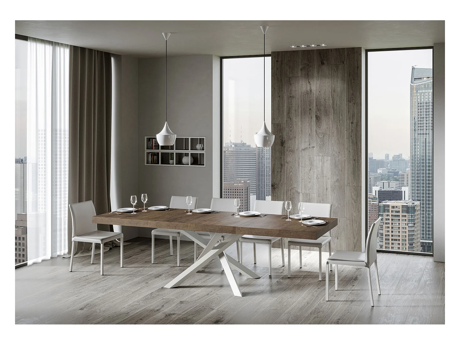 Table extensible 90x160/420 cm Volantis Premium Noyer cadre blanc