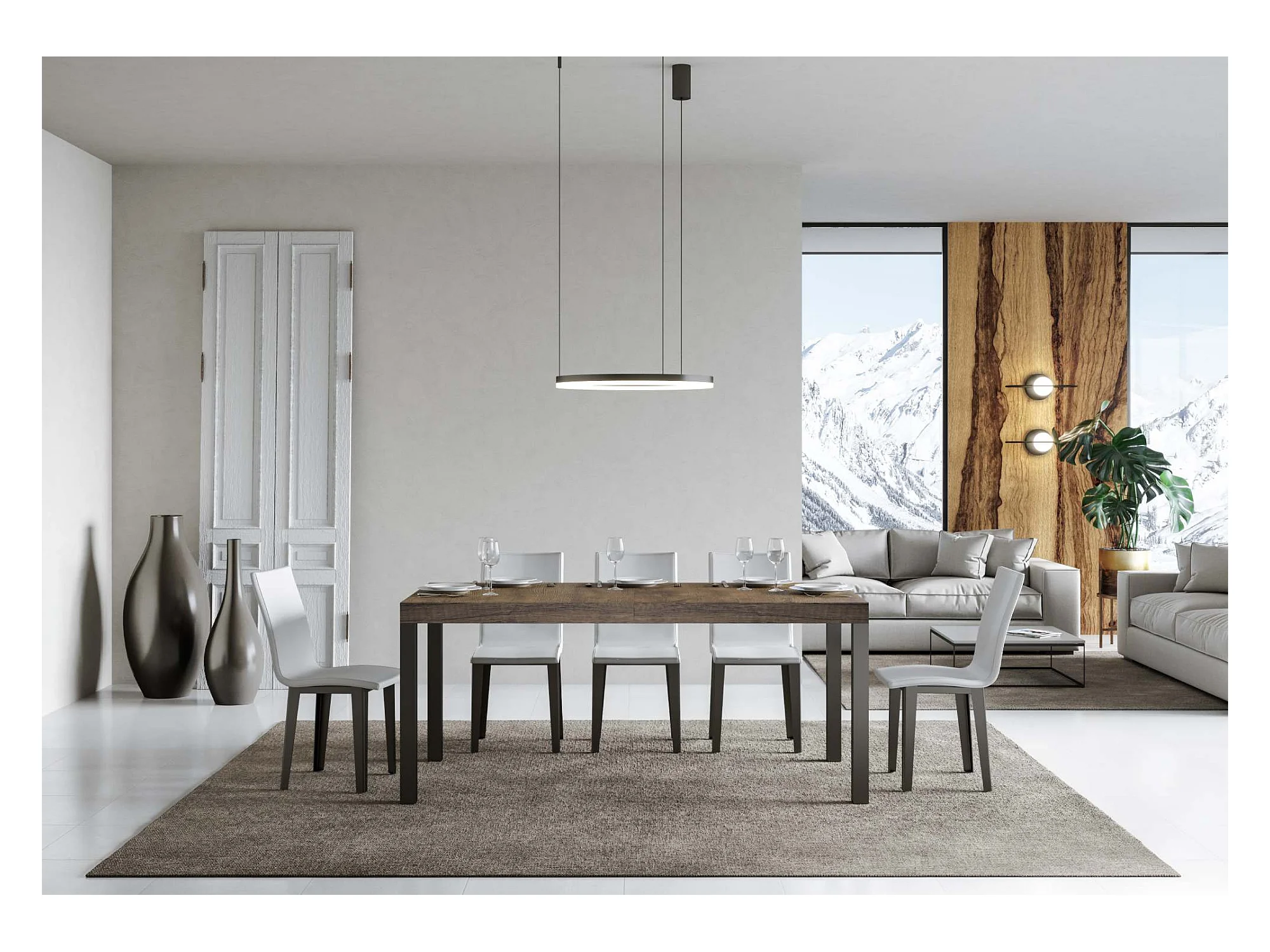 Table extensible 90x180/440 cm Everyday Premium Noyer cadre Anthracite