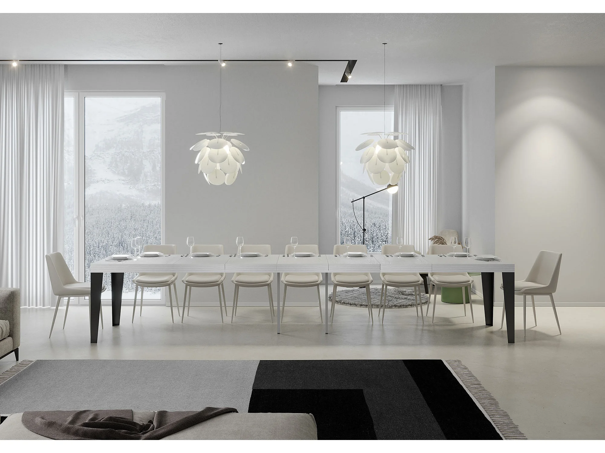 Table extensible 90x180/440 cm Flame Premium Frêne Blanc cadre Anthracite