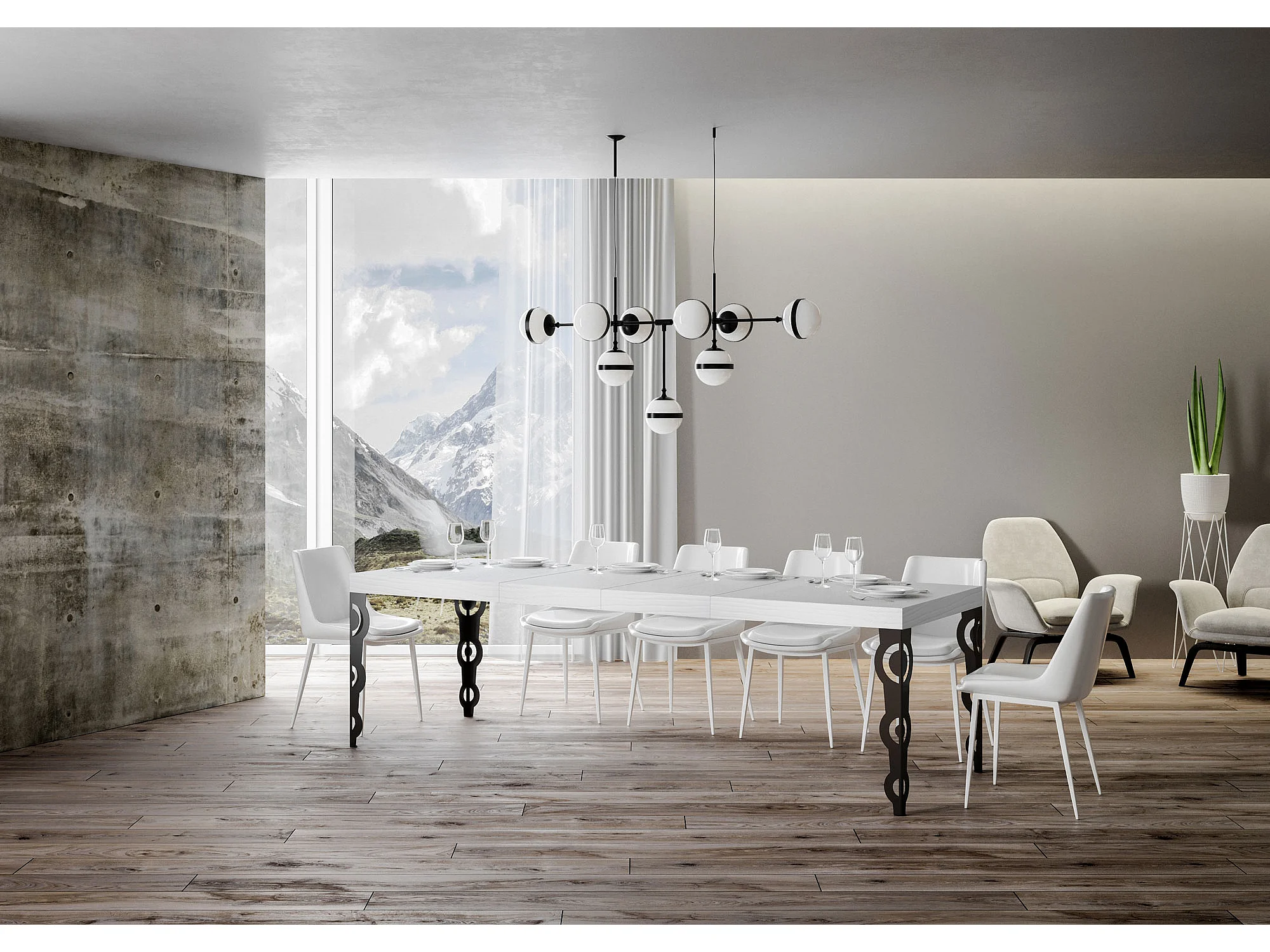 Table extensible 90x180/440 cm Karamay Premium Frêne Blanc cadre Anthracite