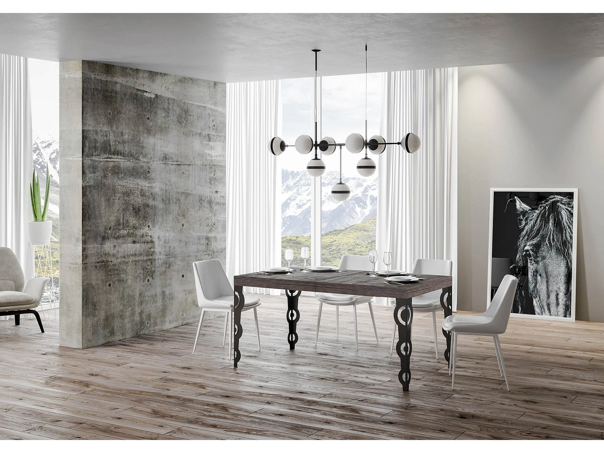 Table extensible 90x180/440 cm Karamay Premium Noyer cadre Anthracite