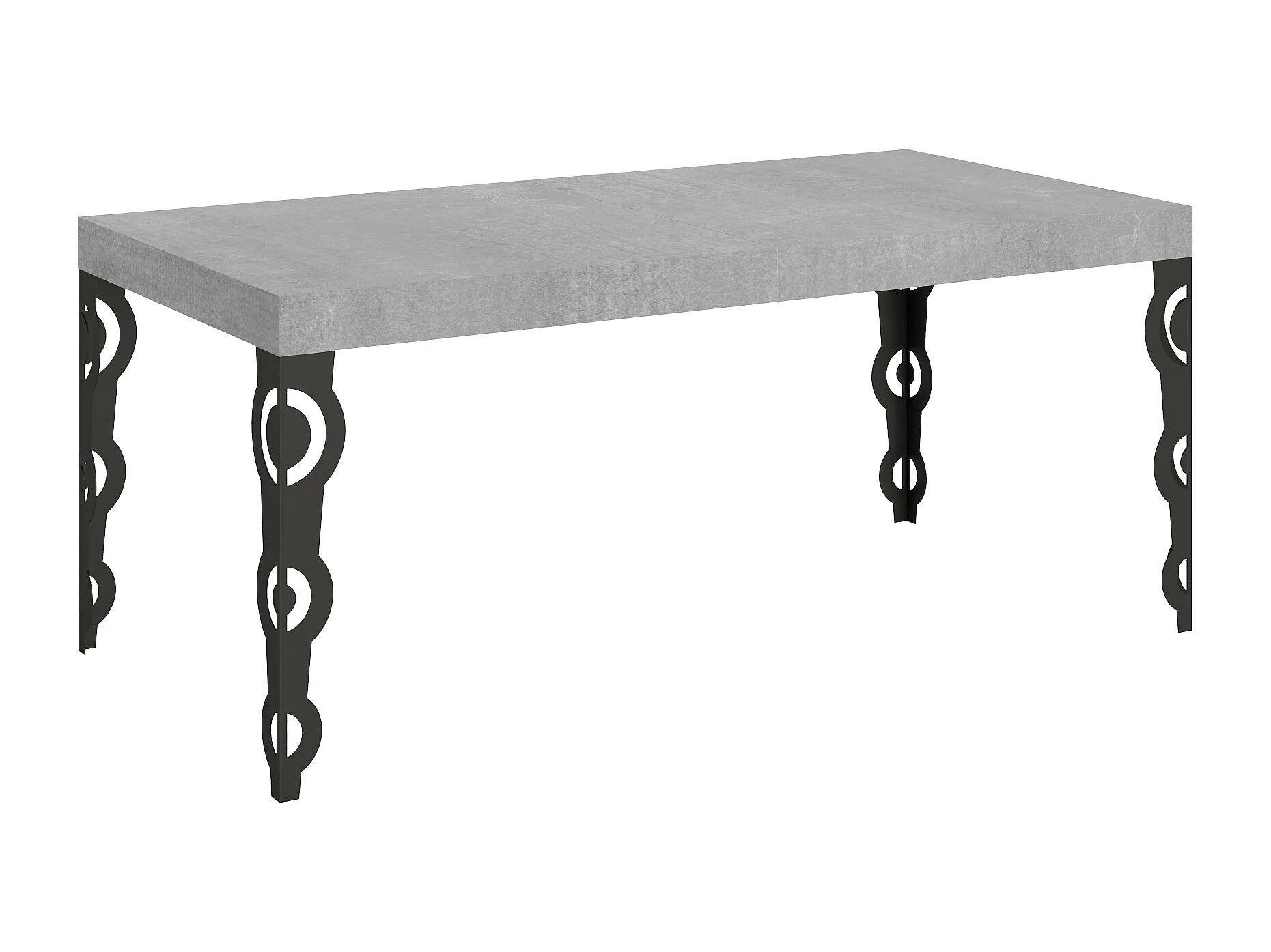 Table extensible 200/304x90 cm Karamay gris béton pieds anthracite