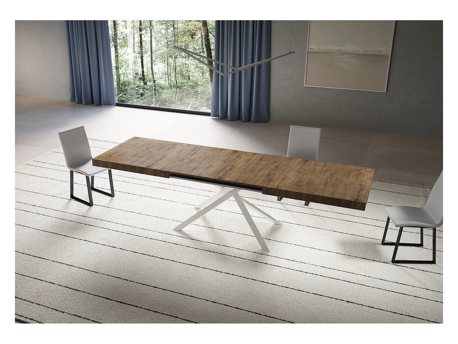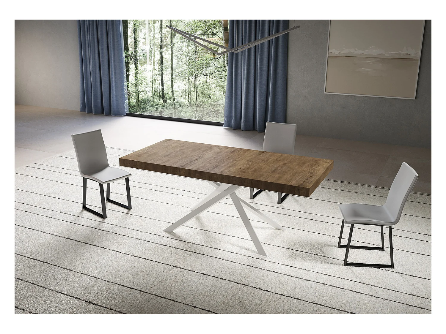Table extensible 90x200/304 cm Niket noyer pieds blanc