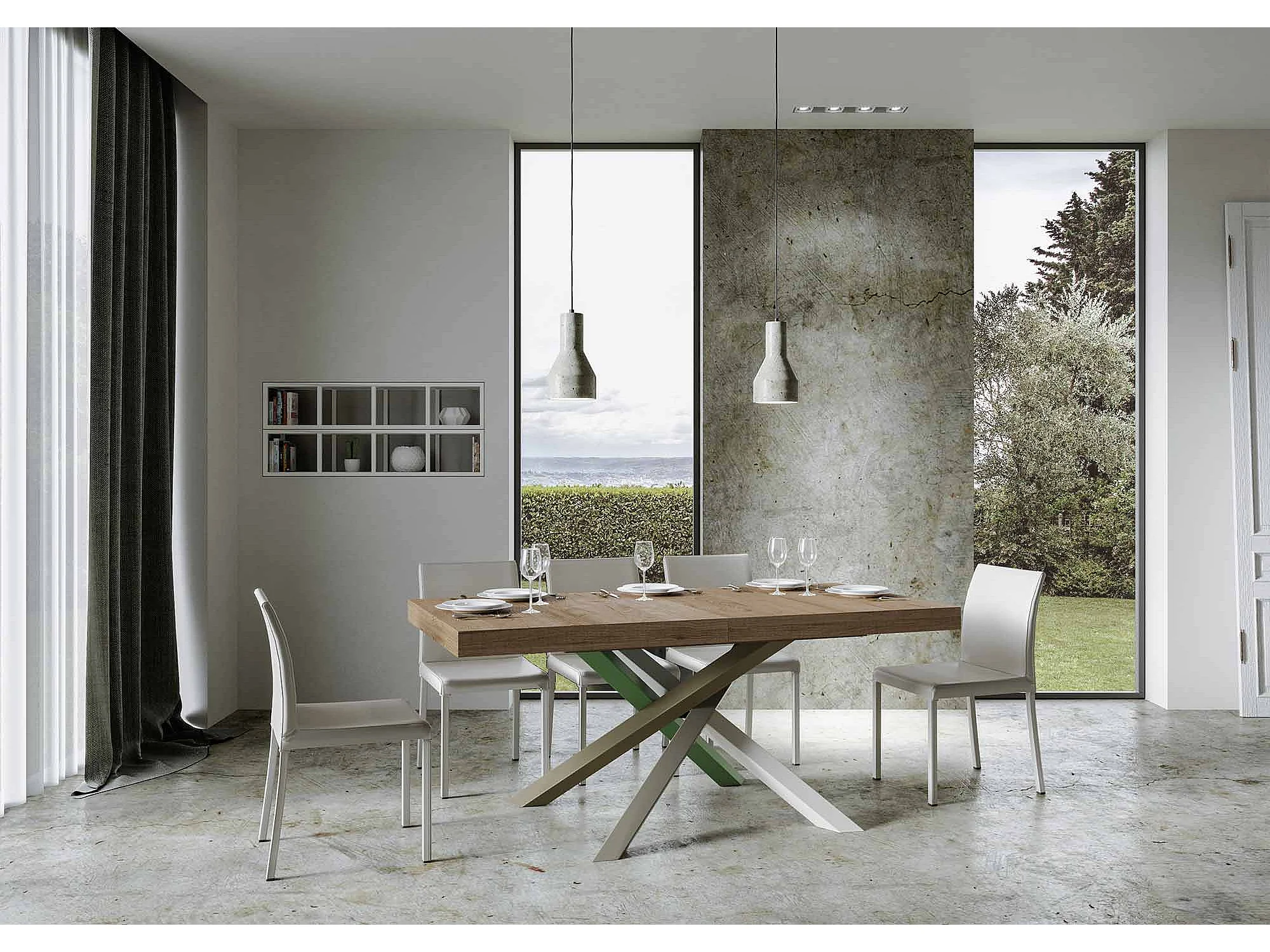Table extensible 200/304x90 cm Volantis chêne nature pieds multicolore 4/A