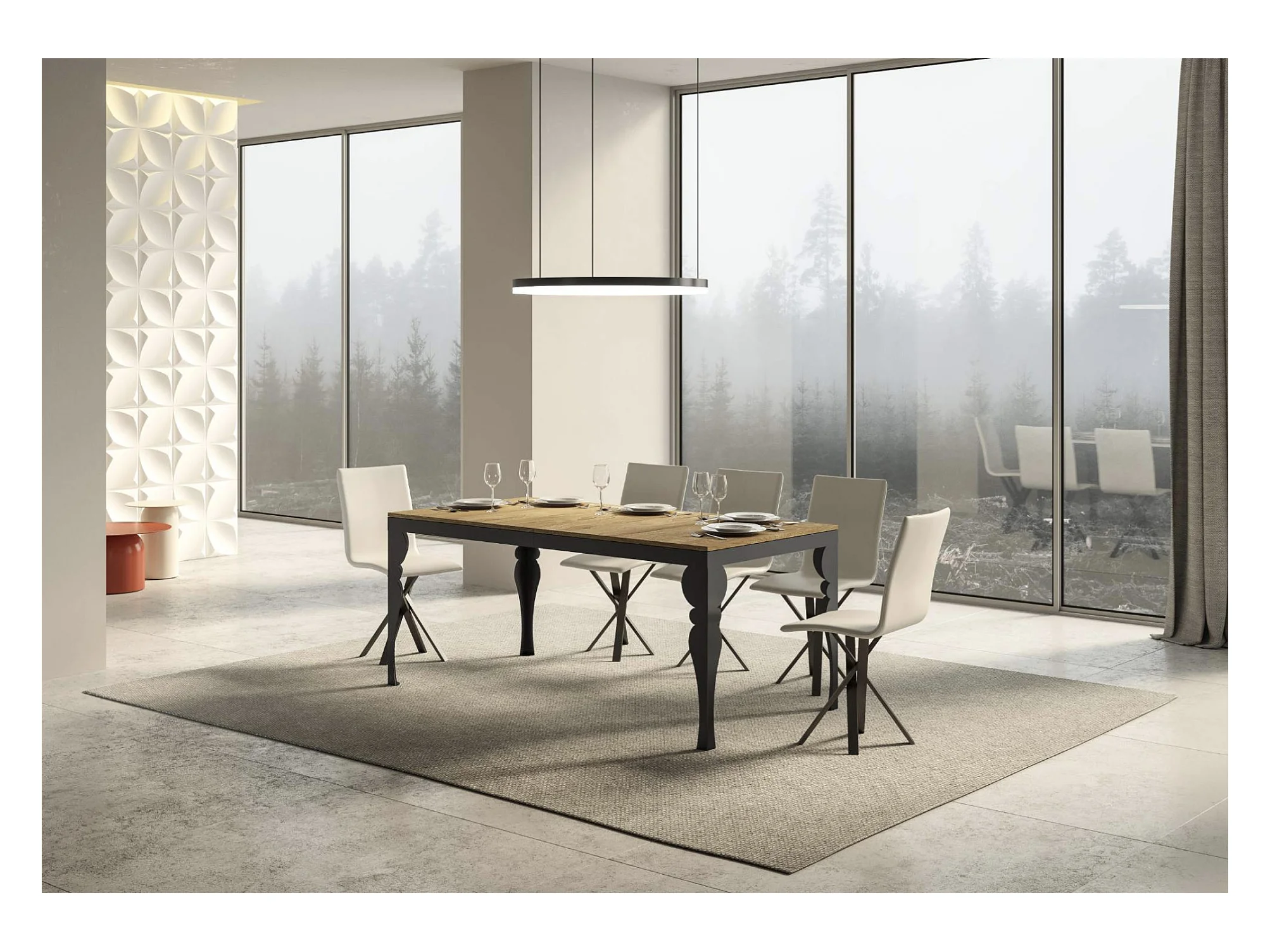 Table extensible pieds acier anthracite Torza evolution-Couleur Naturel-4 pieds-160 à 420cm