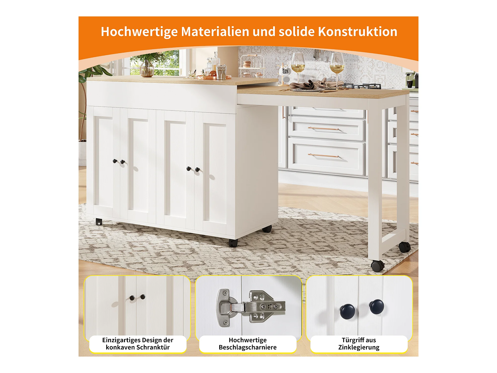 Table extensible avec rangements, MDF et métal, design moderne, blanc (133-202x50x94 cm)