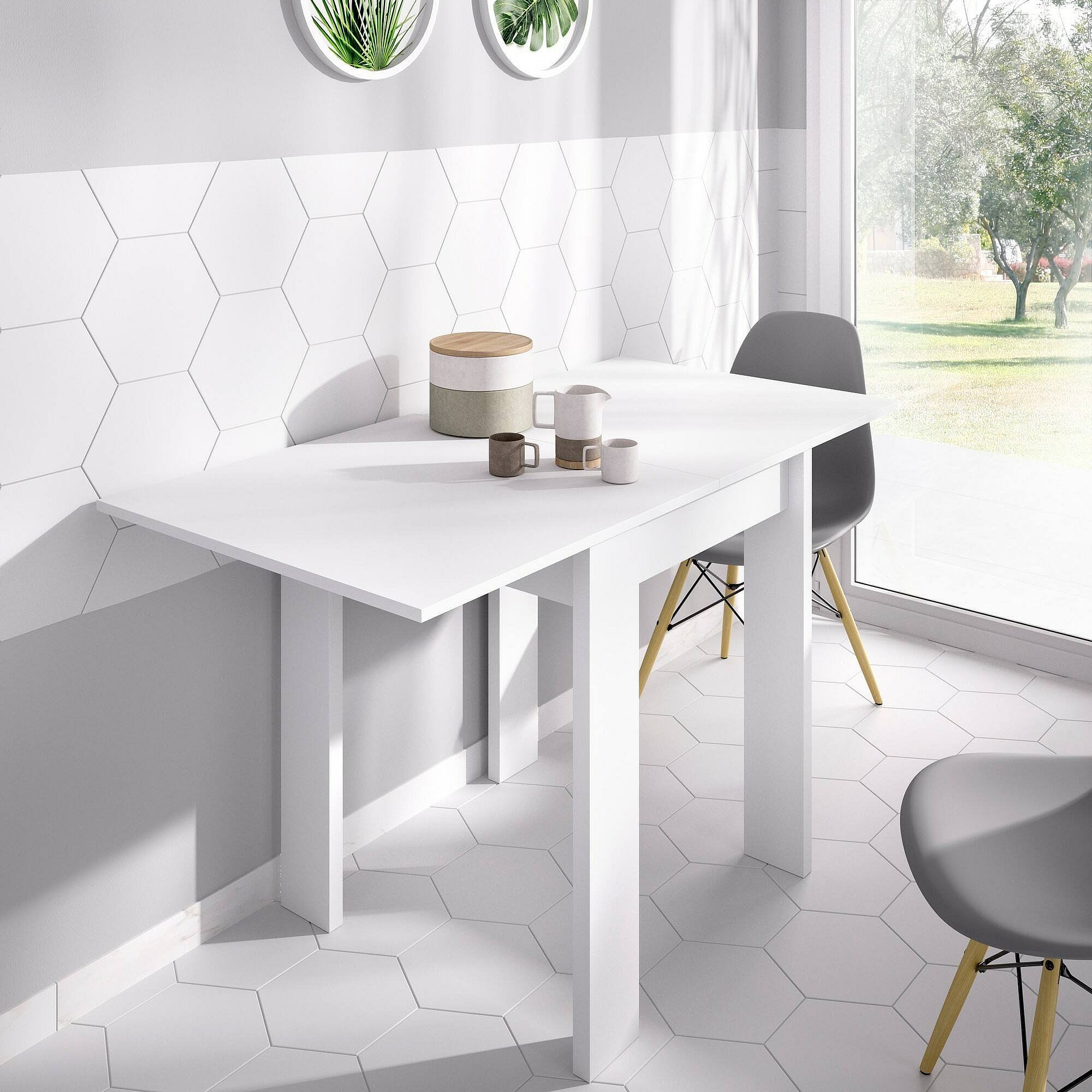 Table extensible Comer, Console extensible multi-positions, Table console auxiliaire pliante, 79/134x67h79 cm, Blanc