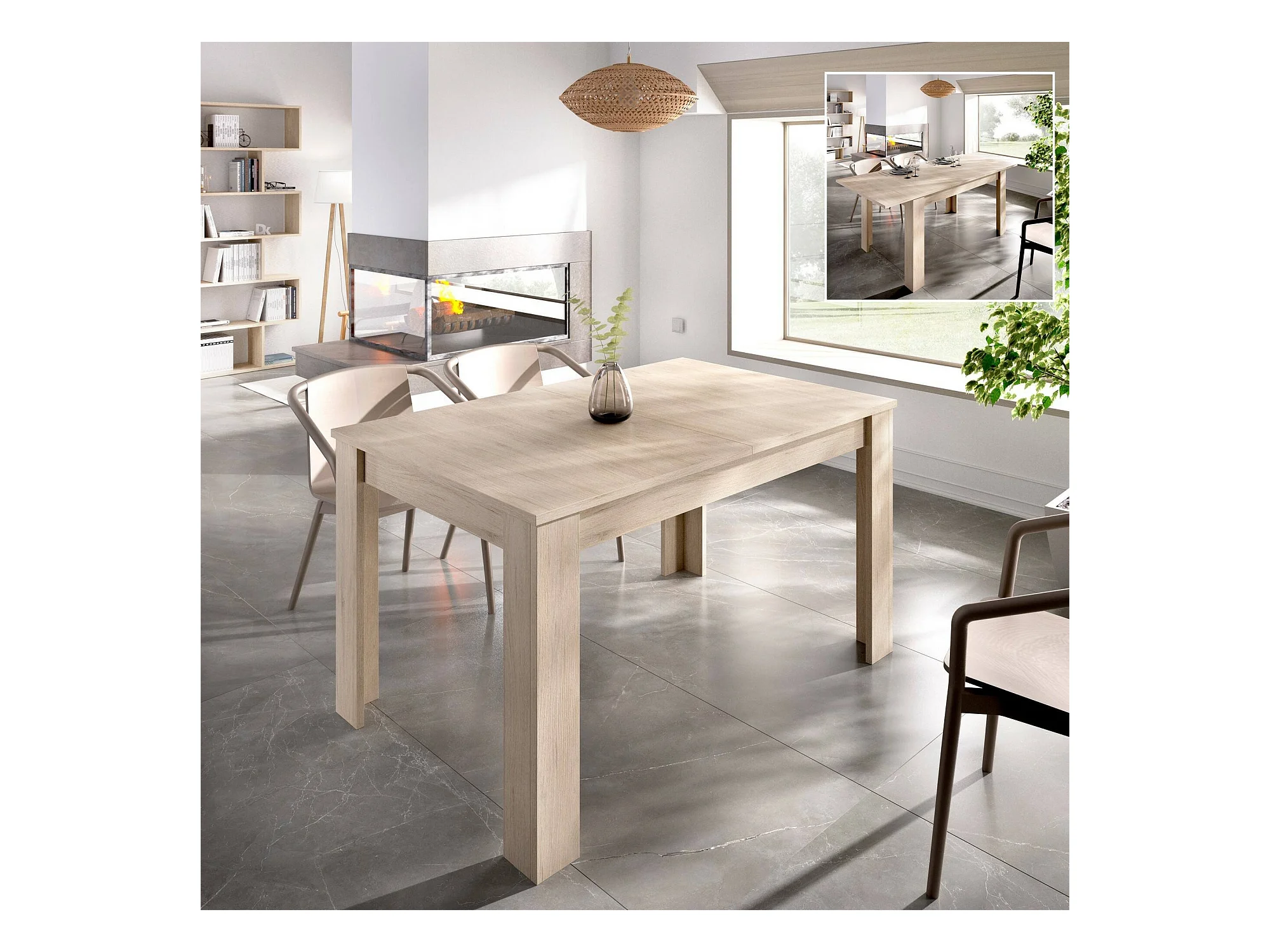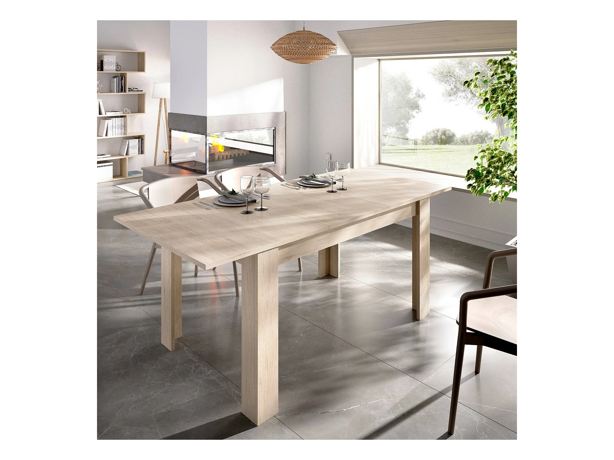 Table extensible Dariaud, Console extensible multi-positions, Table à manger avec rallonge, 140/190x90h77 cm, Chêne