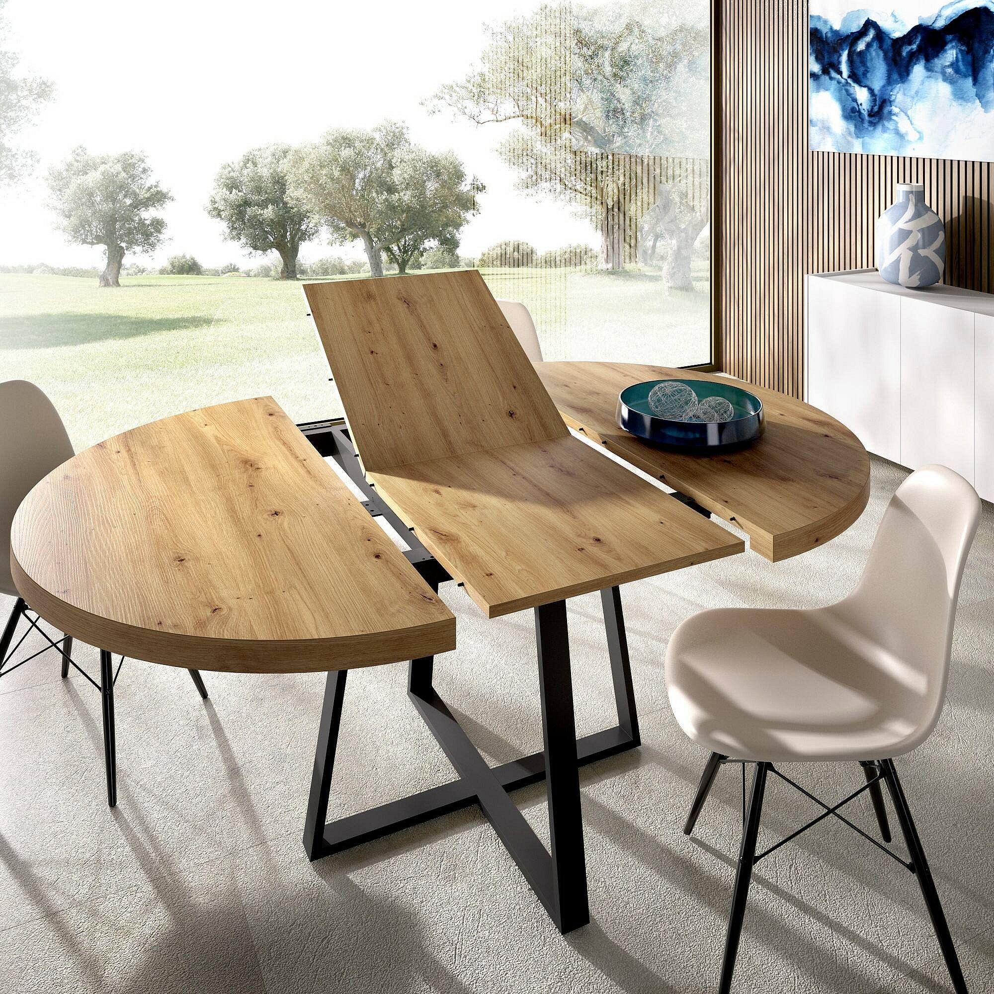 Table extensible Dazz, Console extensible ronde, Table à manger polyvalente ovale, 110/158x110h77 cm, Chêne Nodi