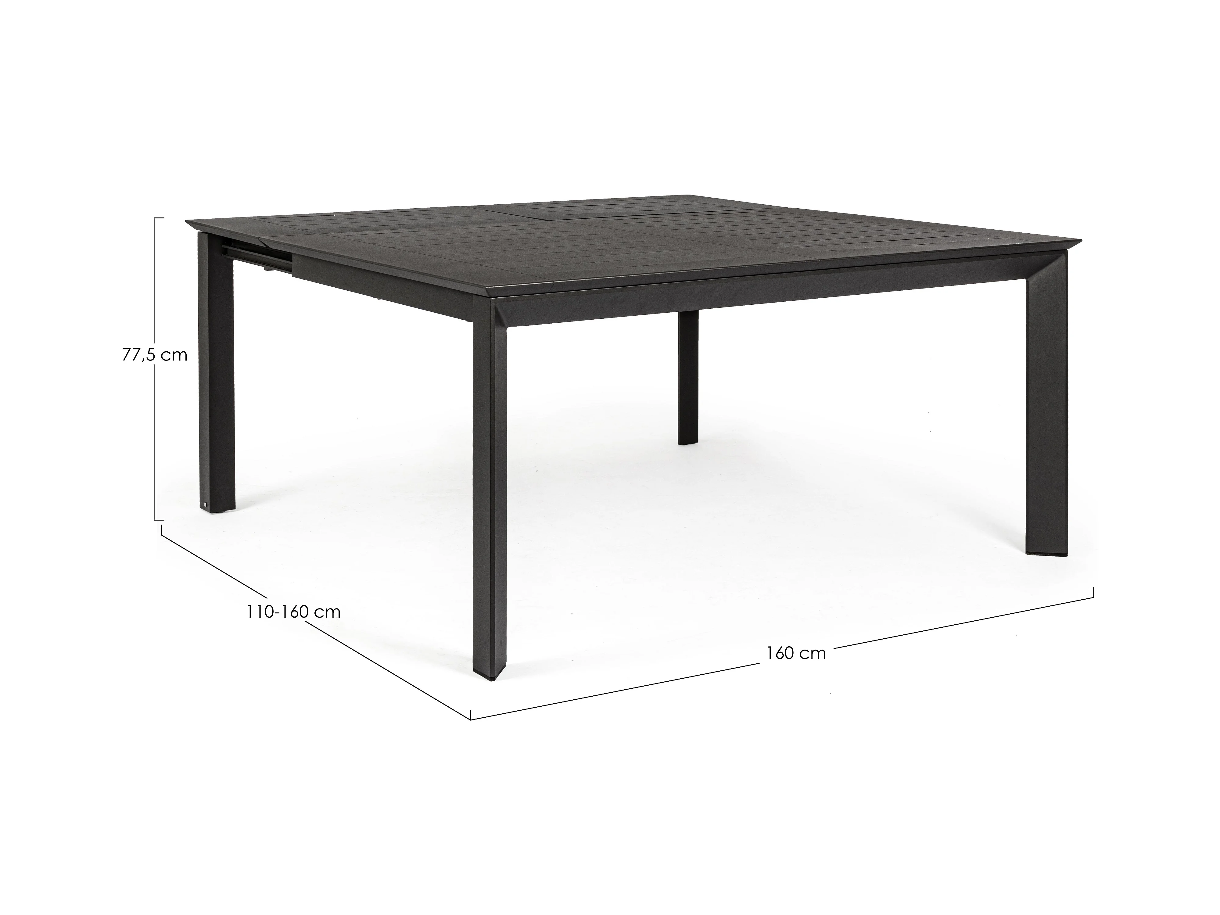 Table extensible de jardin carrée en aluminium anthracite Koni 110-160cm