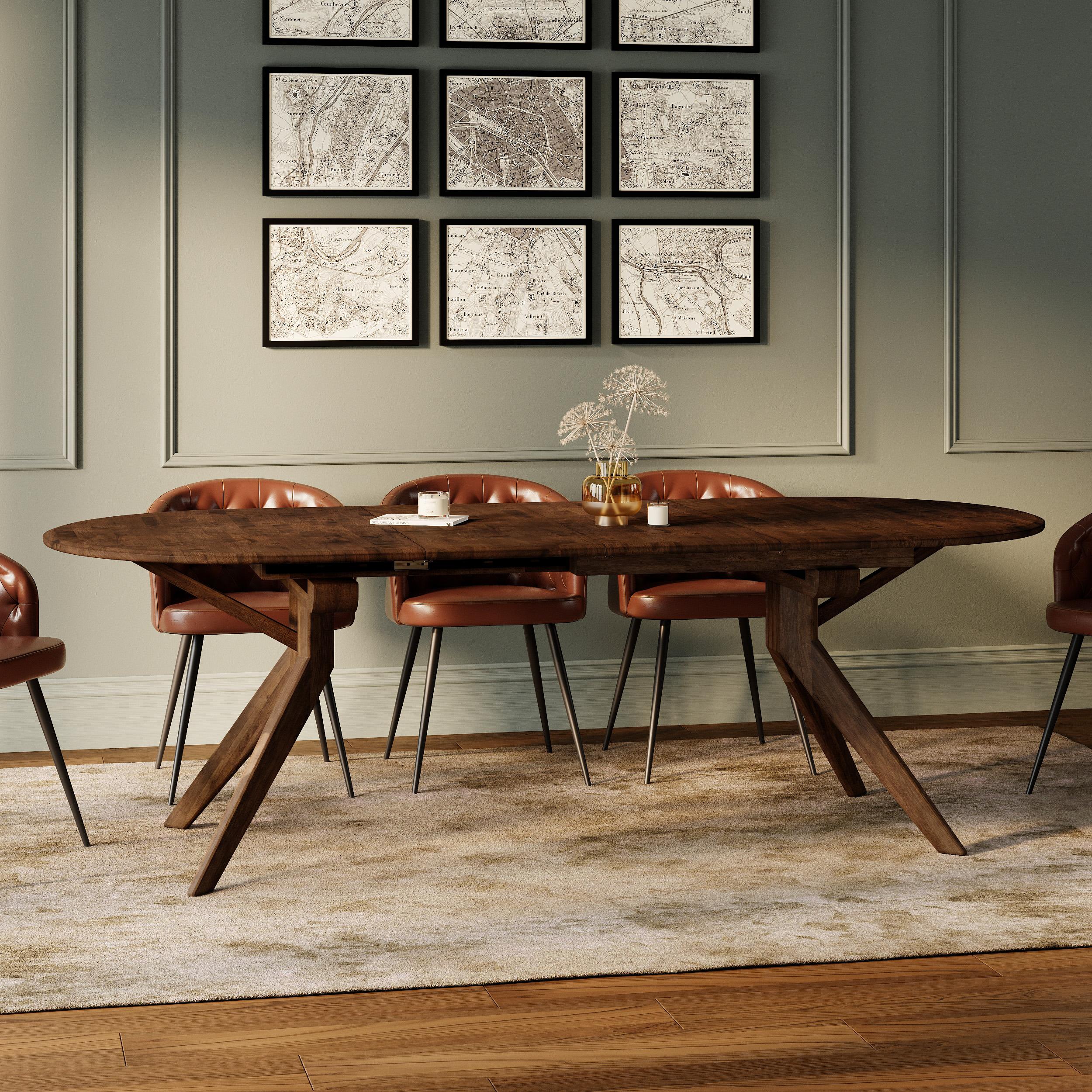 Table extensible en bois d'hévéa massif foncé 6 à 10 personnes - Oli