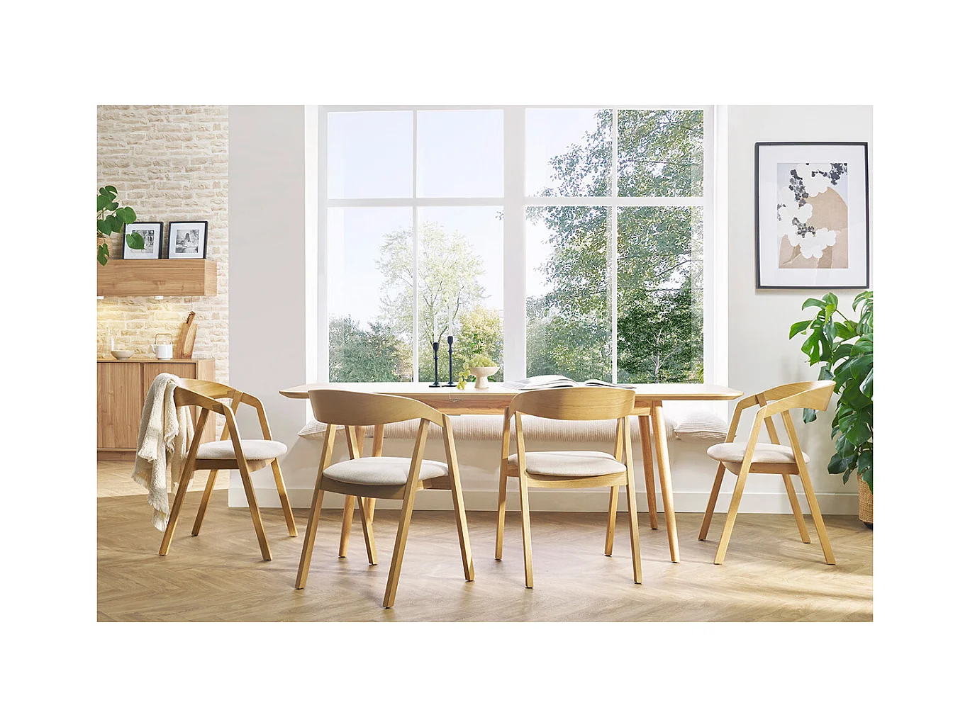 Table extensible rallonges intégrées rectangulaire en bois clair chêne L160-210 cm ANK