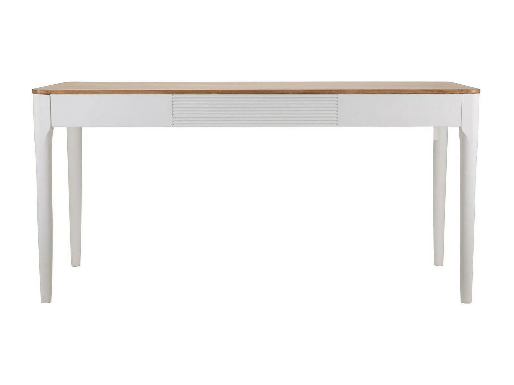 Table fixe Dindga, Etagère de cuisine, Consolle à manger, Table rectangulaire fixe, 180x60 h80 cm, Blanc et marron