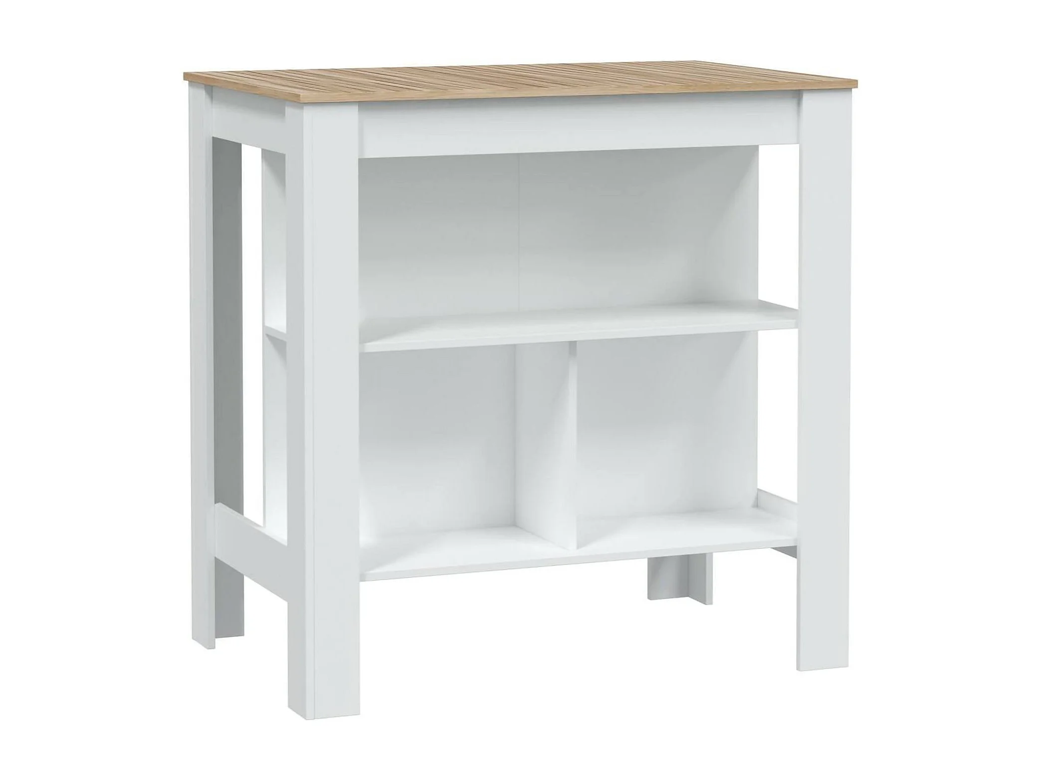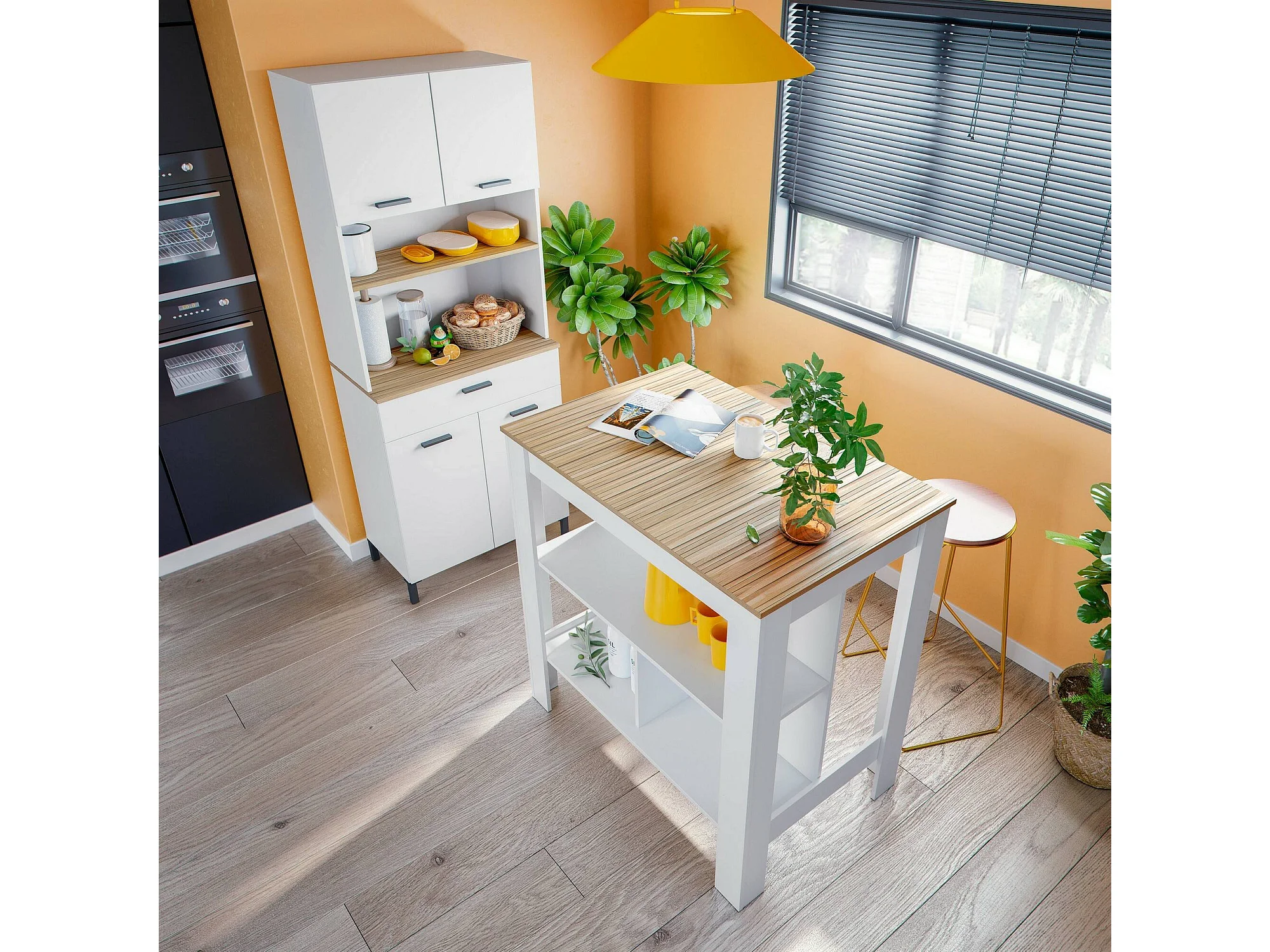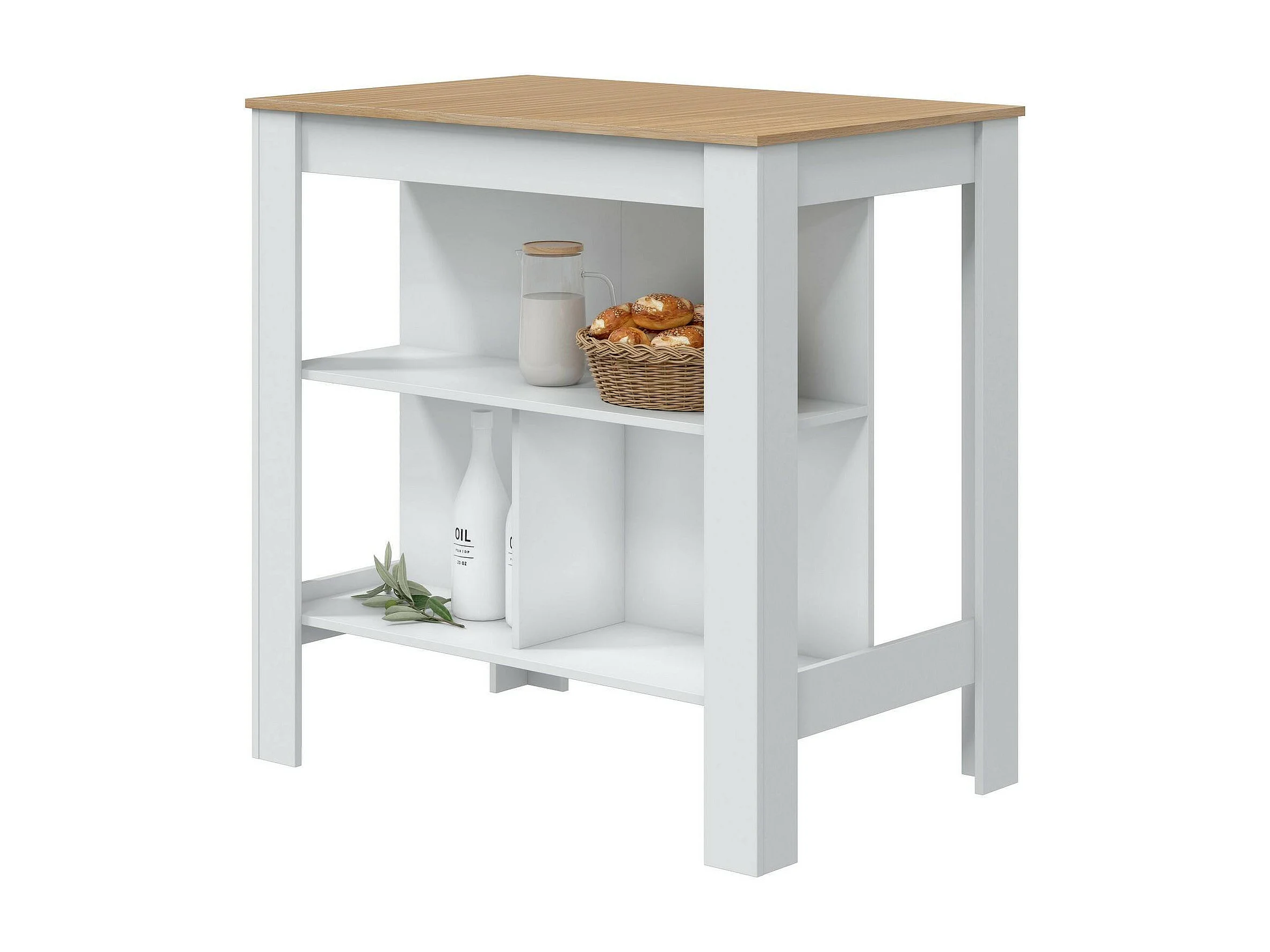 Table fixe Dzinett, Etagère de cuisine, Consolle à manger, Tablette rectangulaire fixe, 103x67 h105 cm, Blanc et Chêne clair