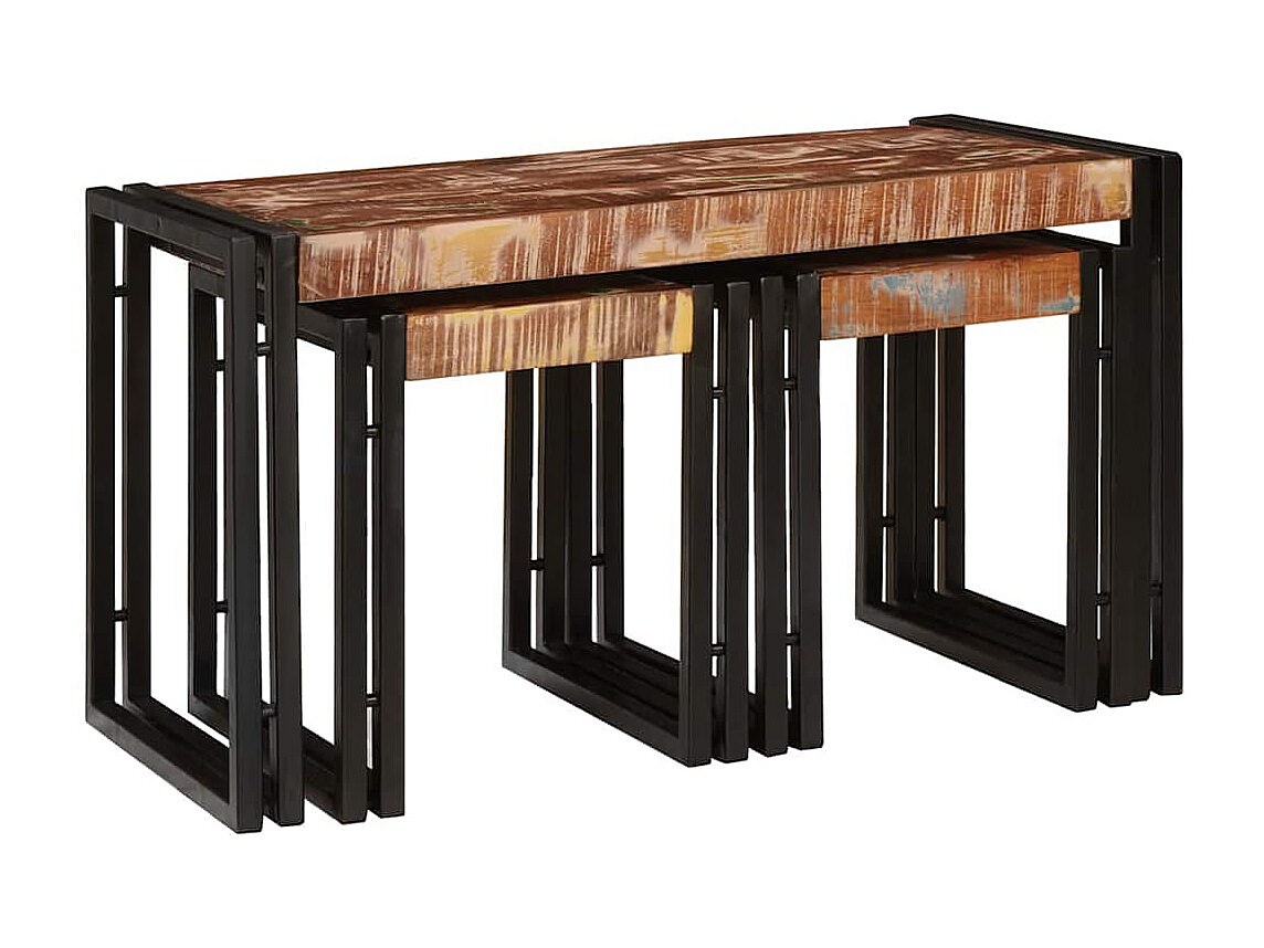 Table Gigogne 3 pièces Marron et noir bois de récupération massif