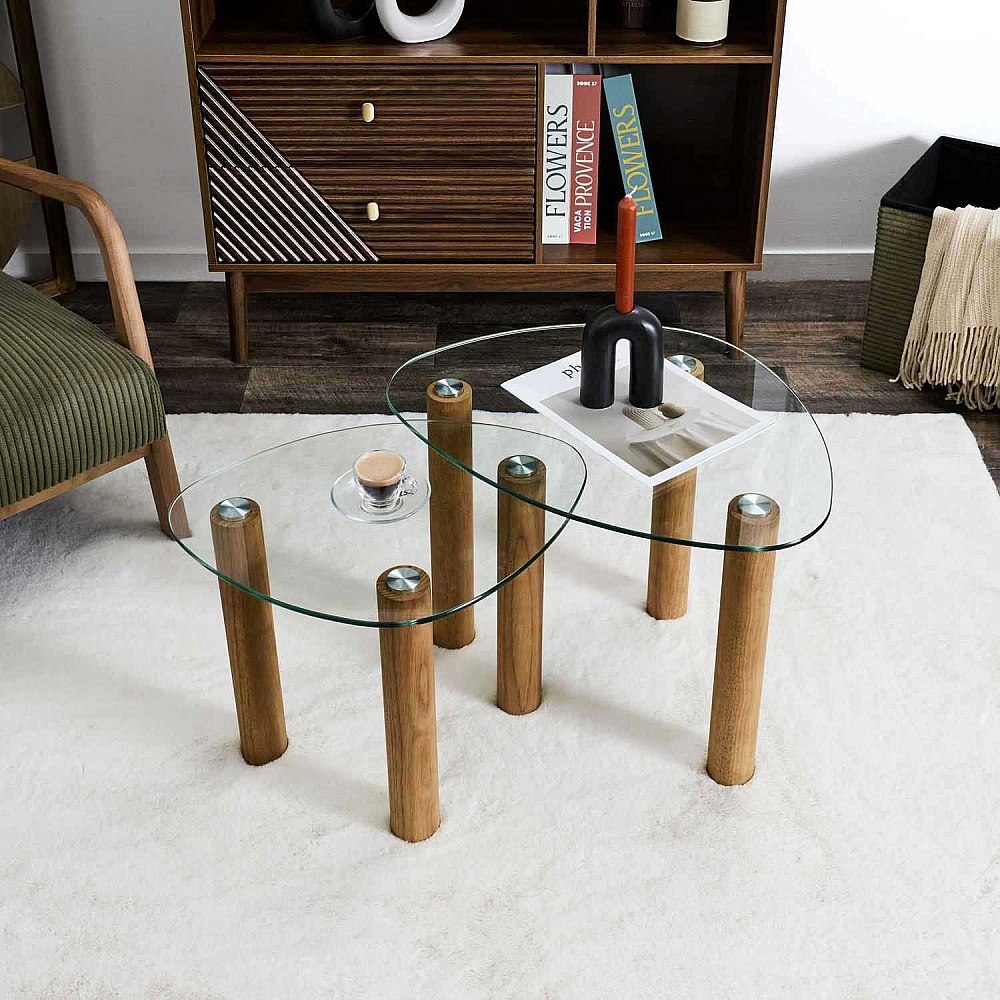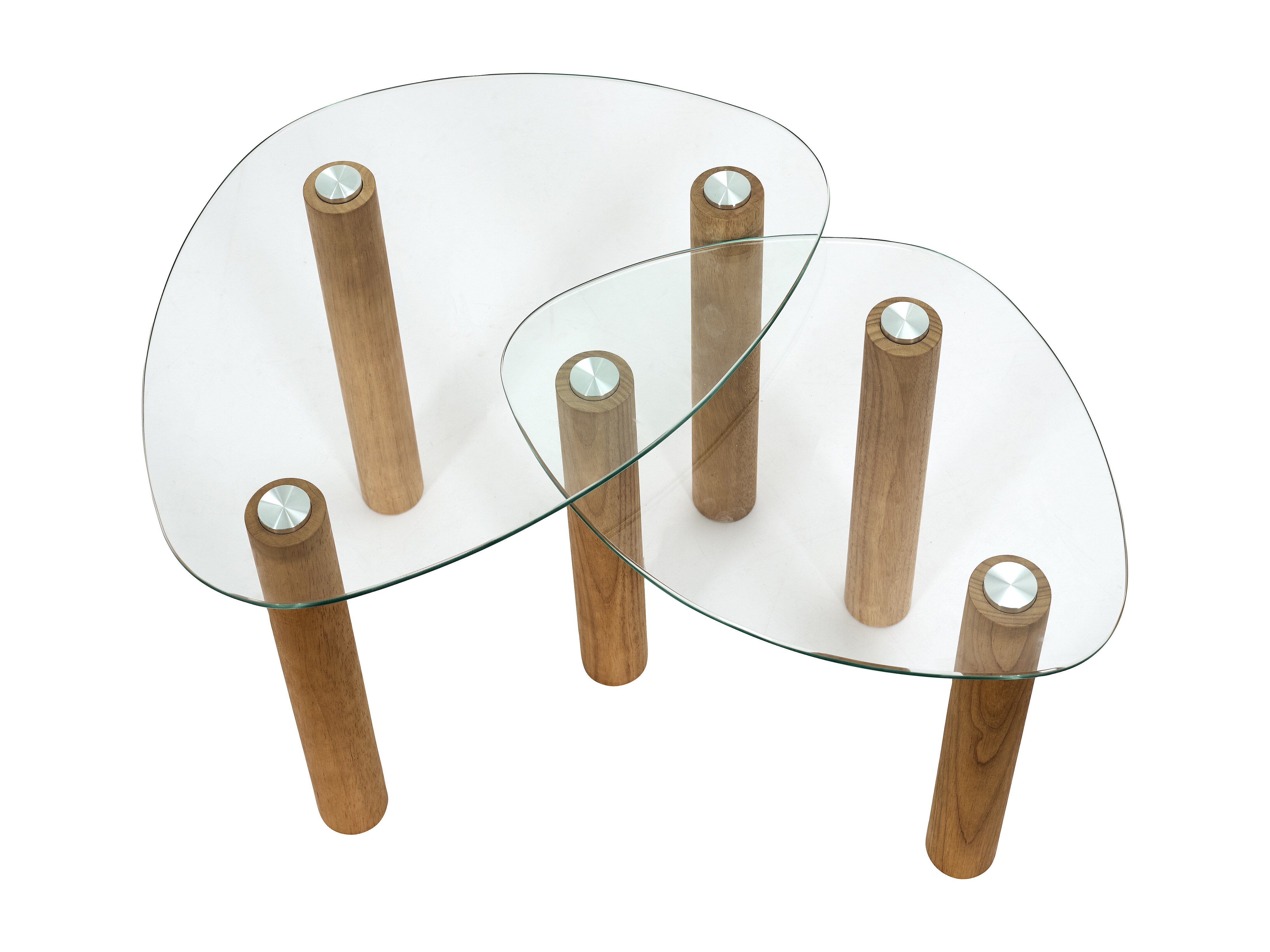 Table Gigogne Verre Trempe Galet Clara X2 Marron