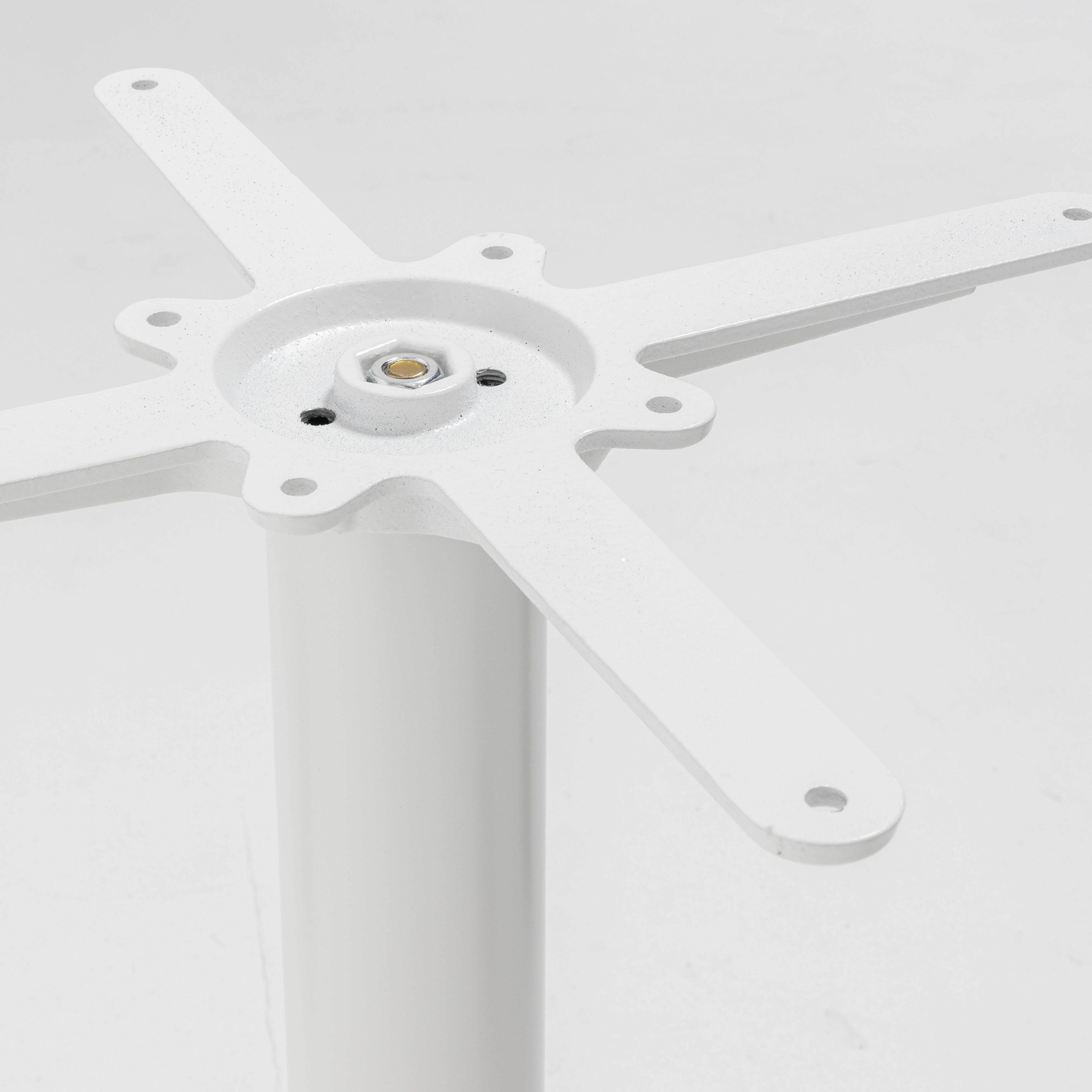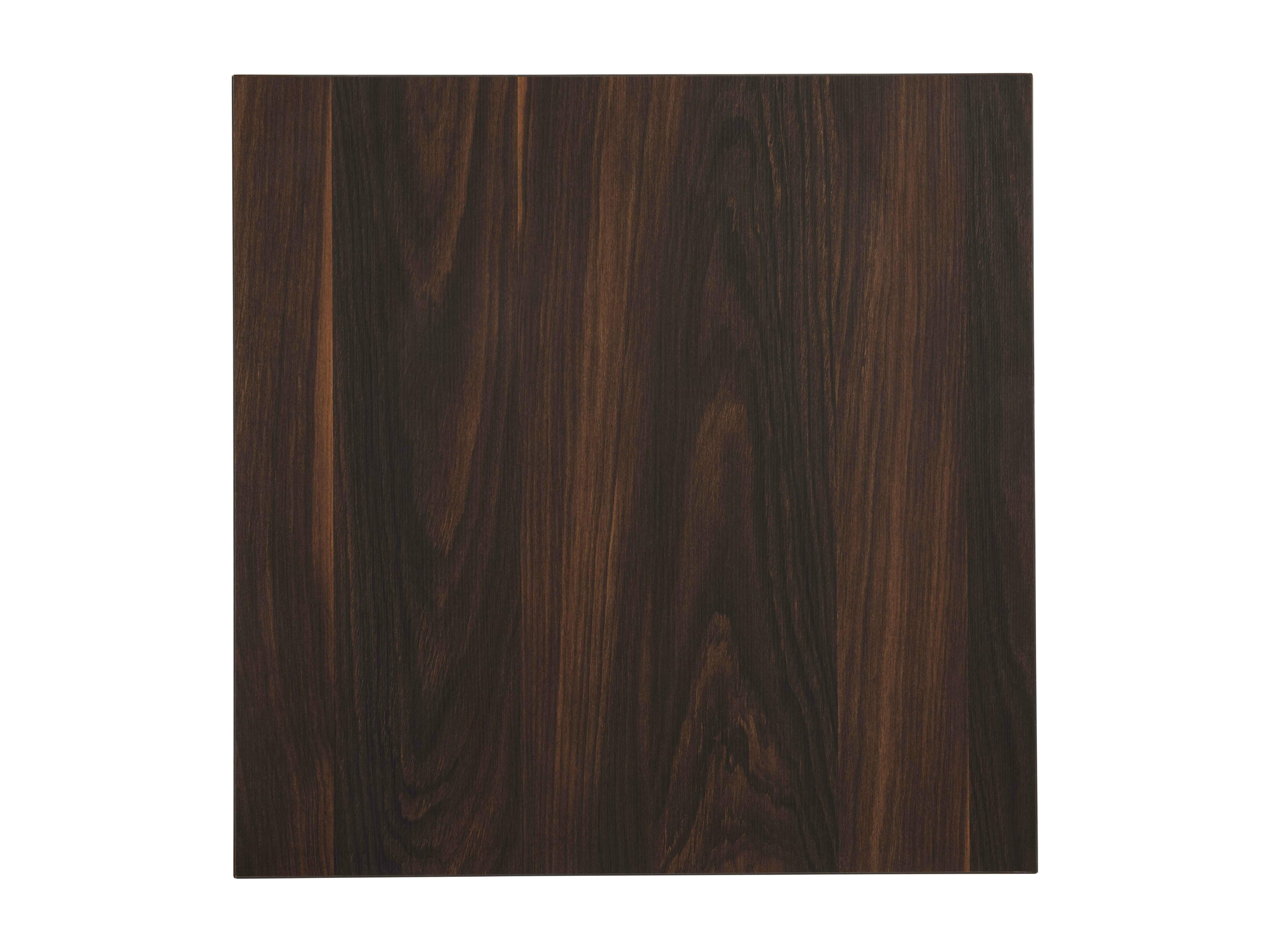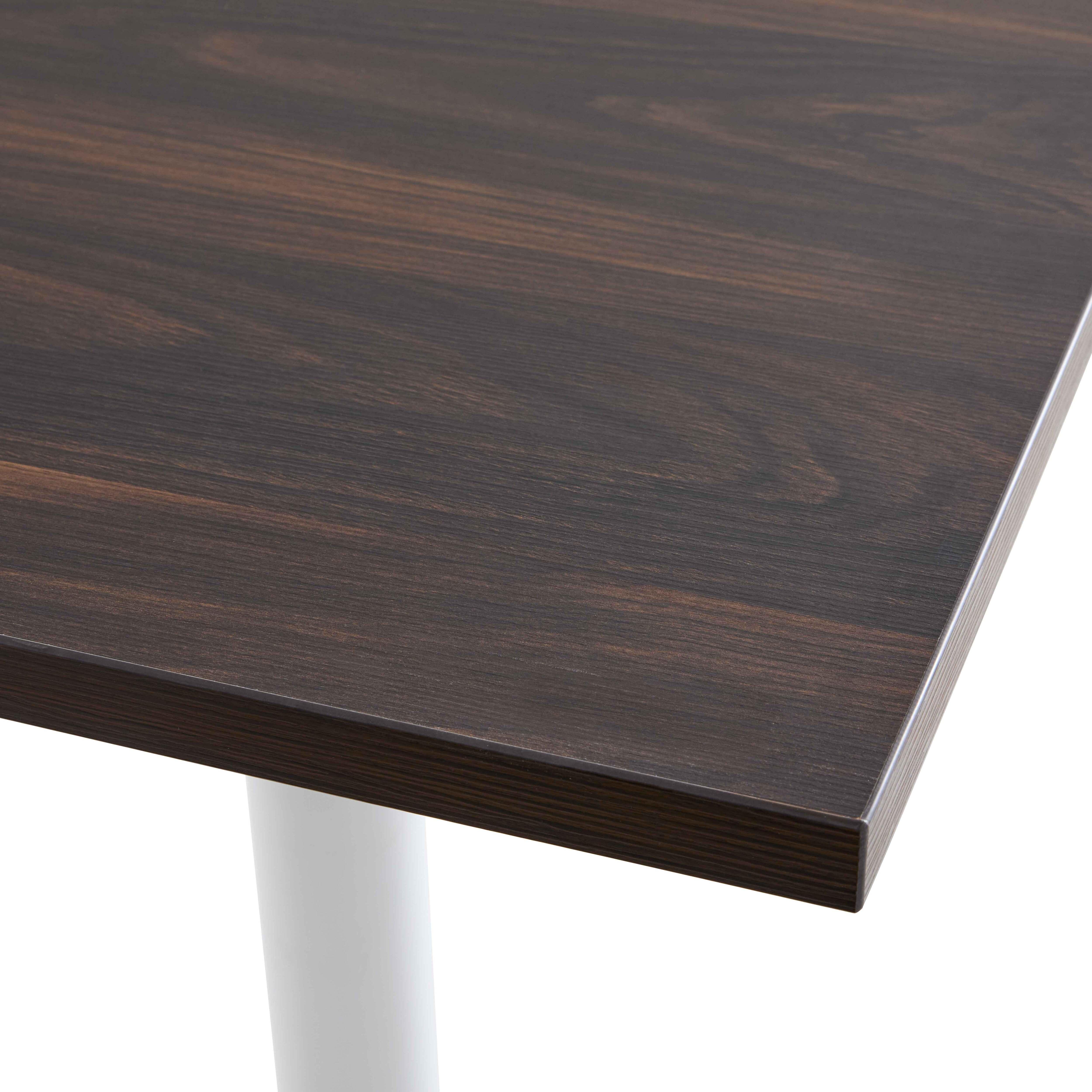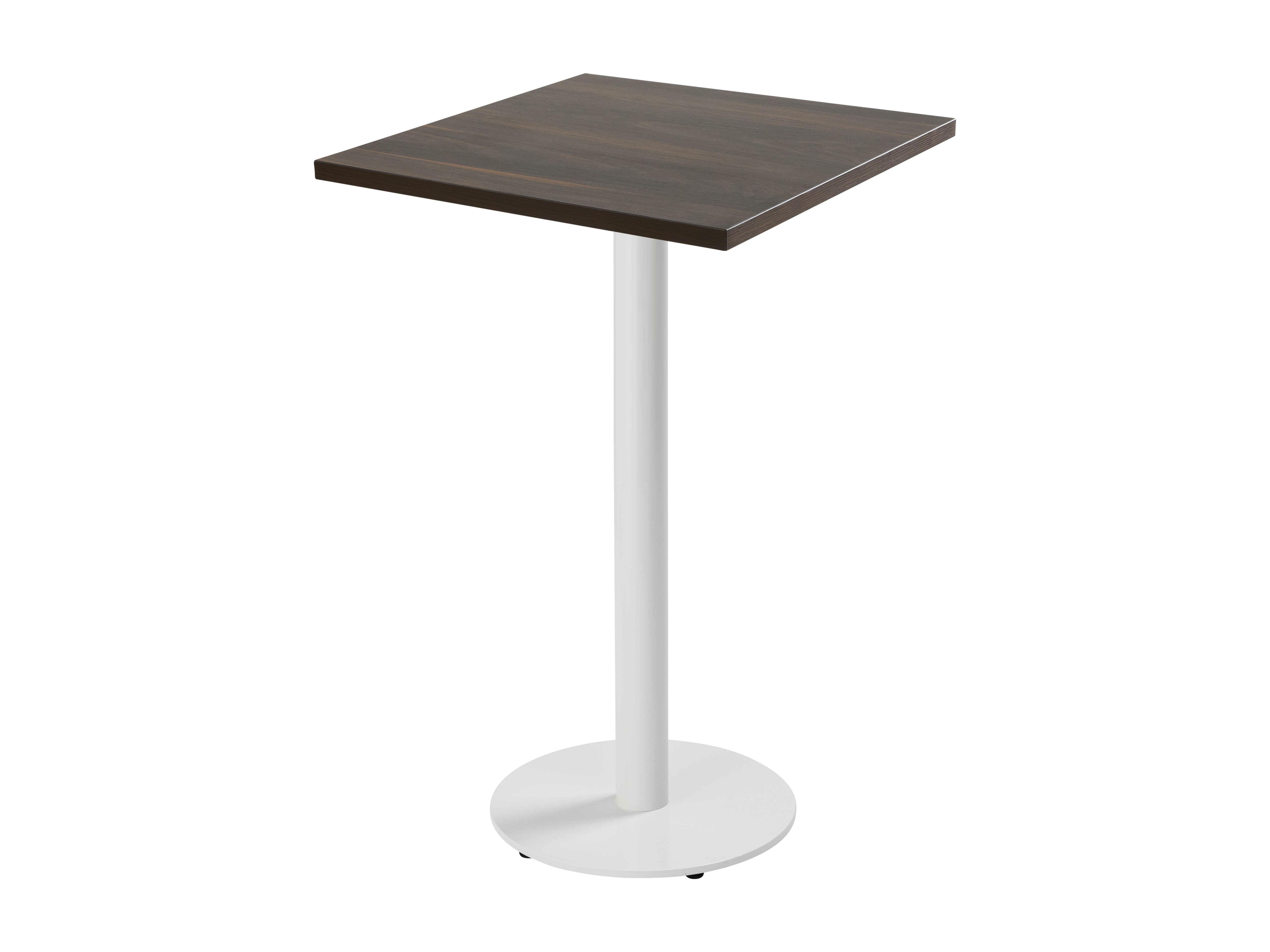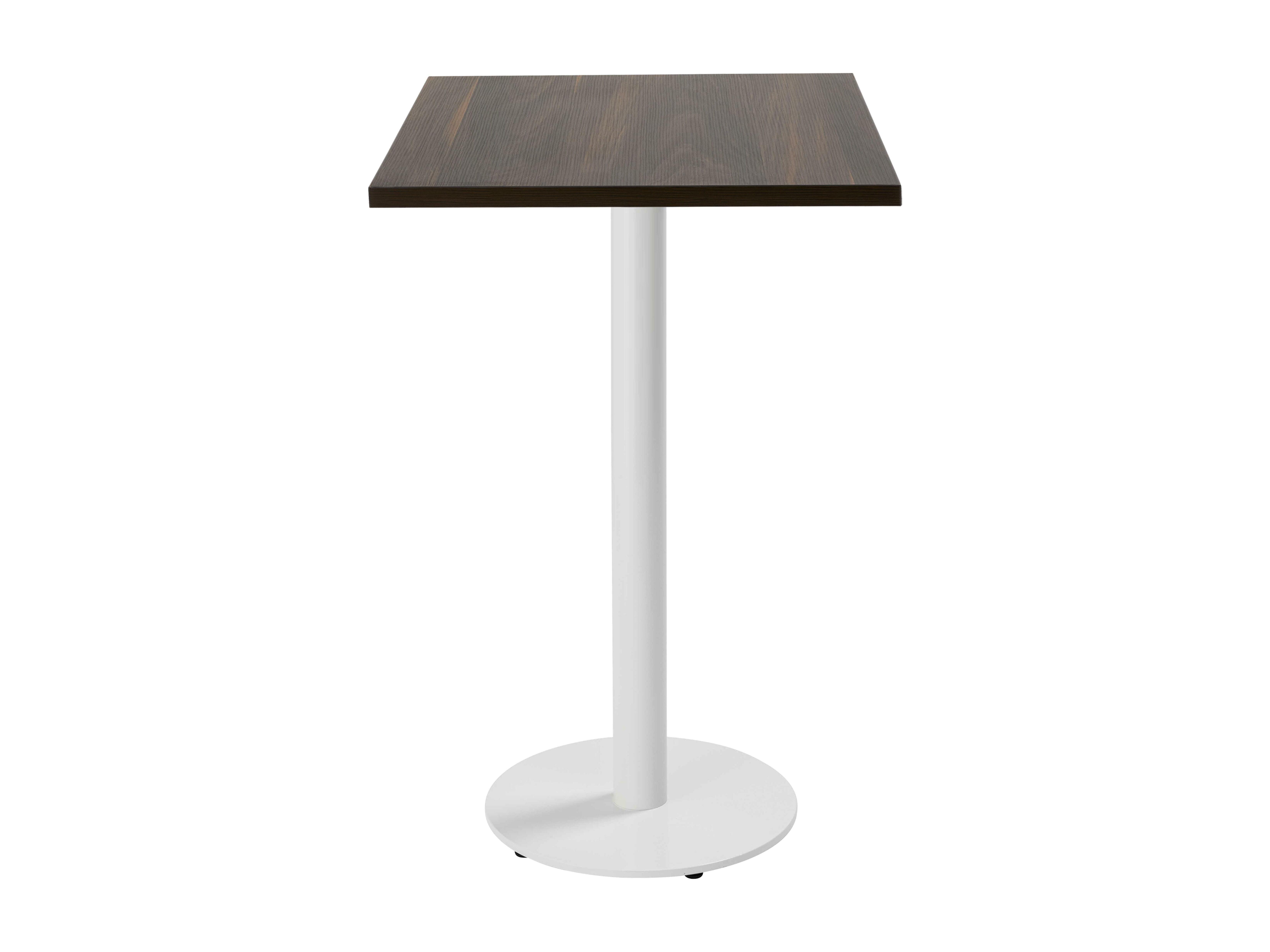 Table haute carrée 60 cm pied blanc et revêtement bois foncé
