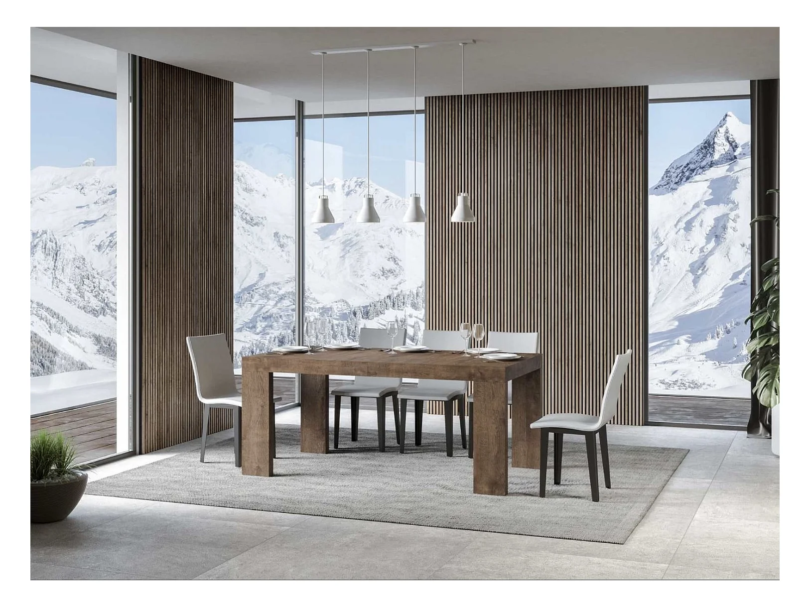 Table rectangulaire extensible 180 à 284cm bois foncé Ribo-Support 4 pieds