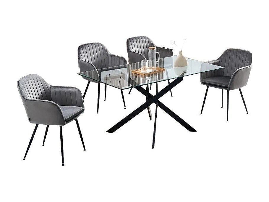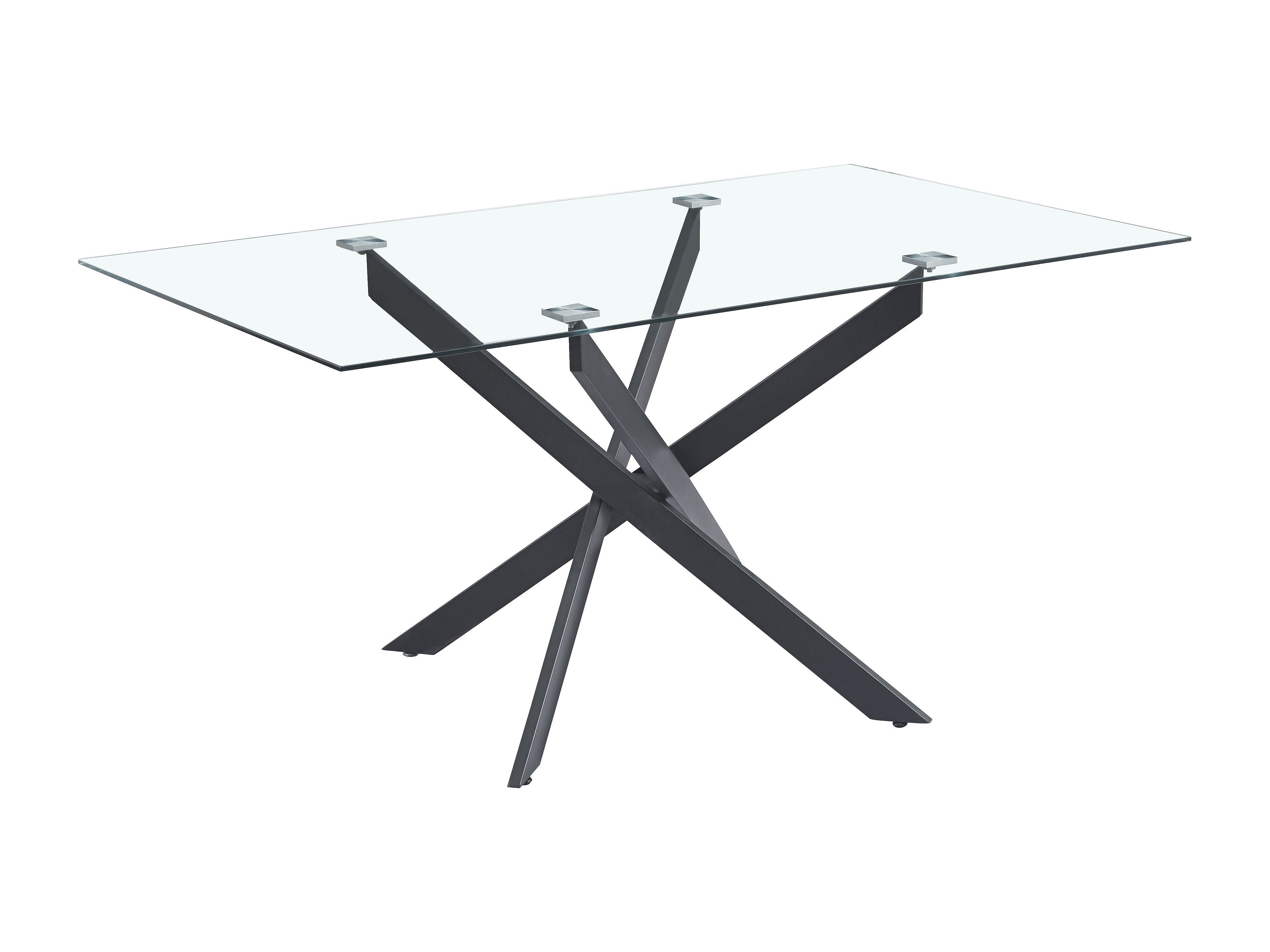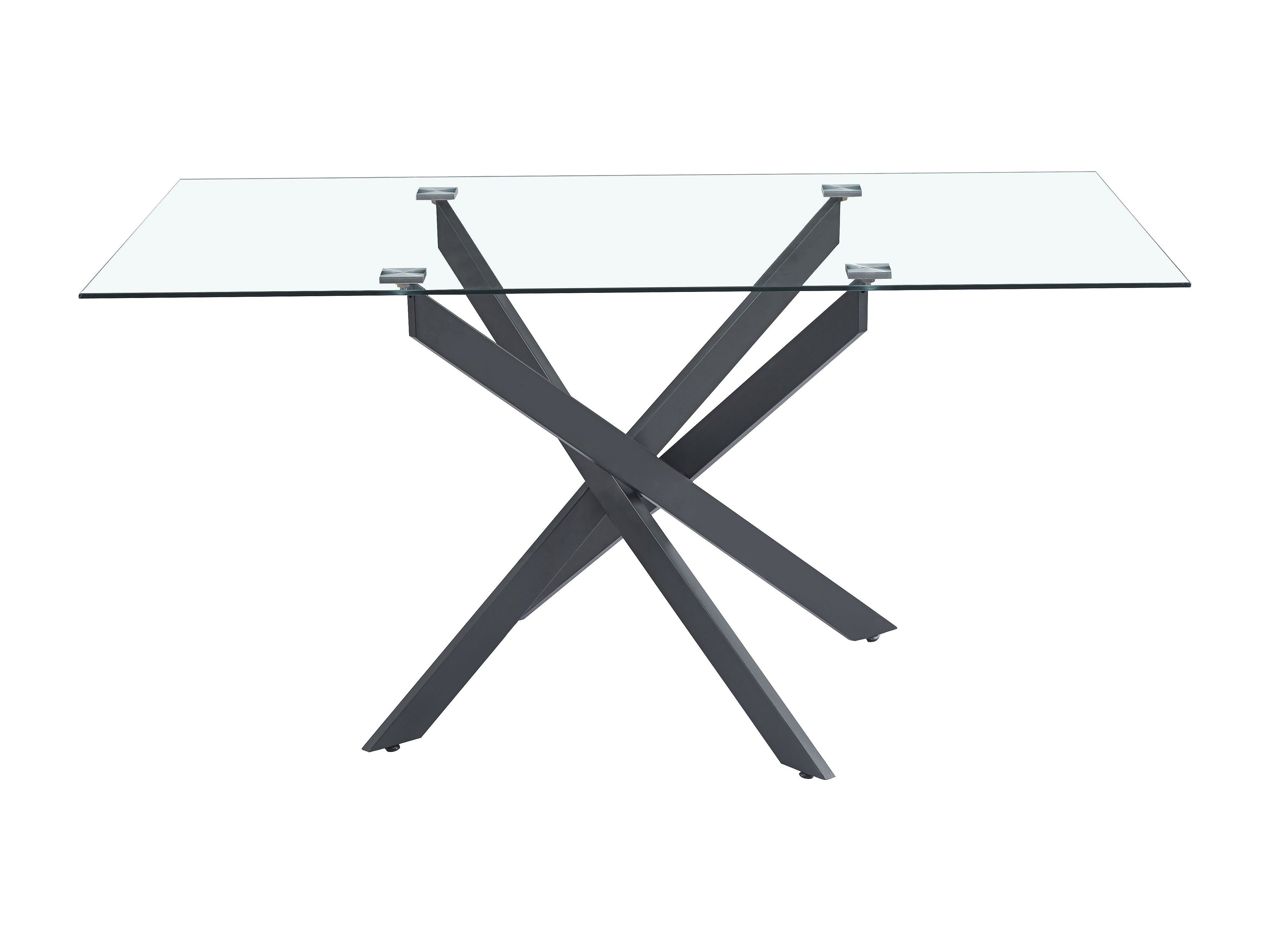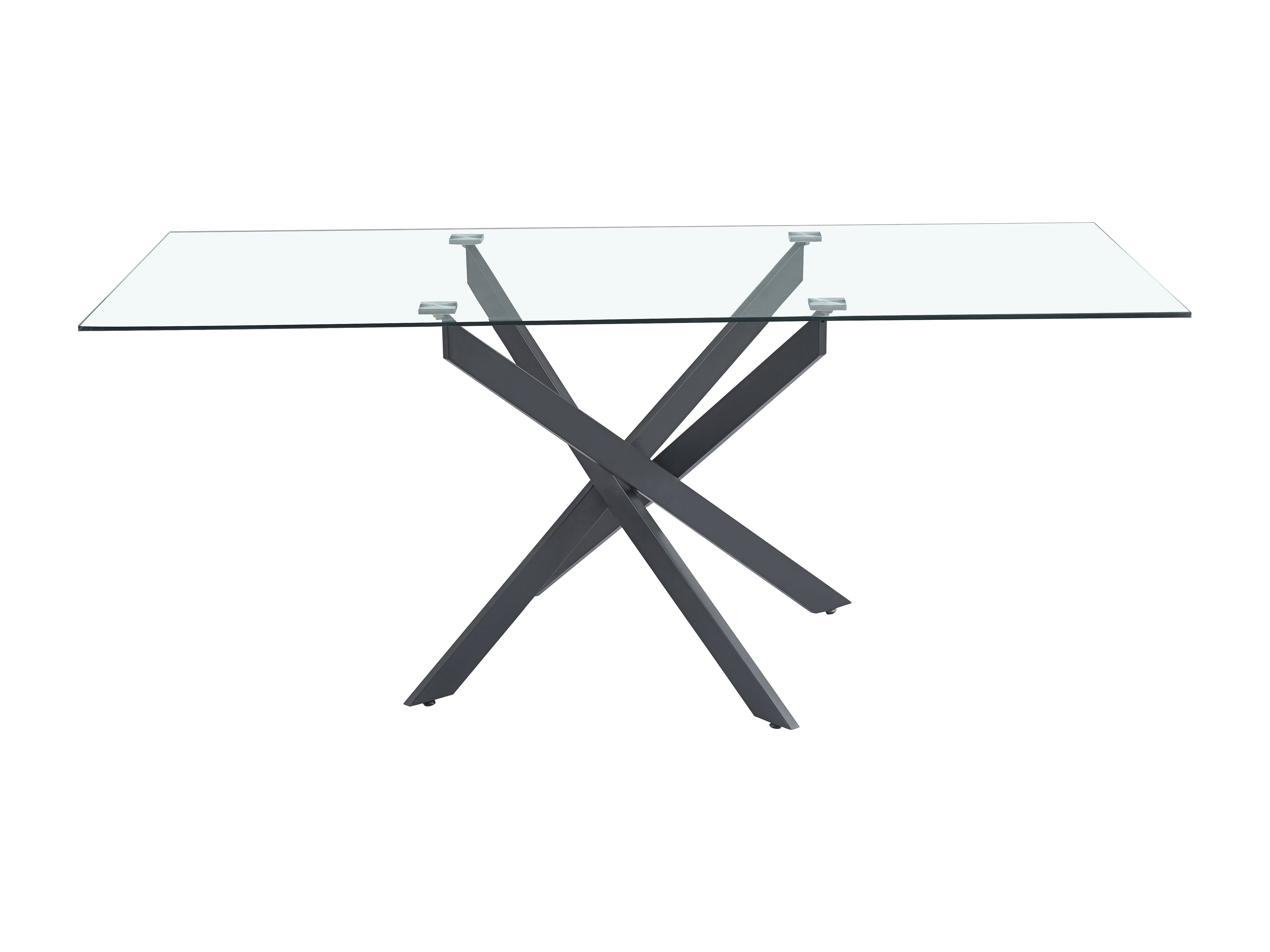 Table Repas JESSICA Métal noir et plateau en verre 150 cm 4 à 6 couverts transparent