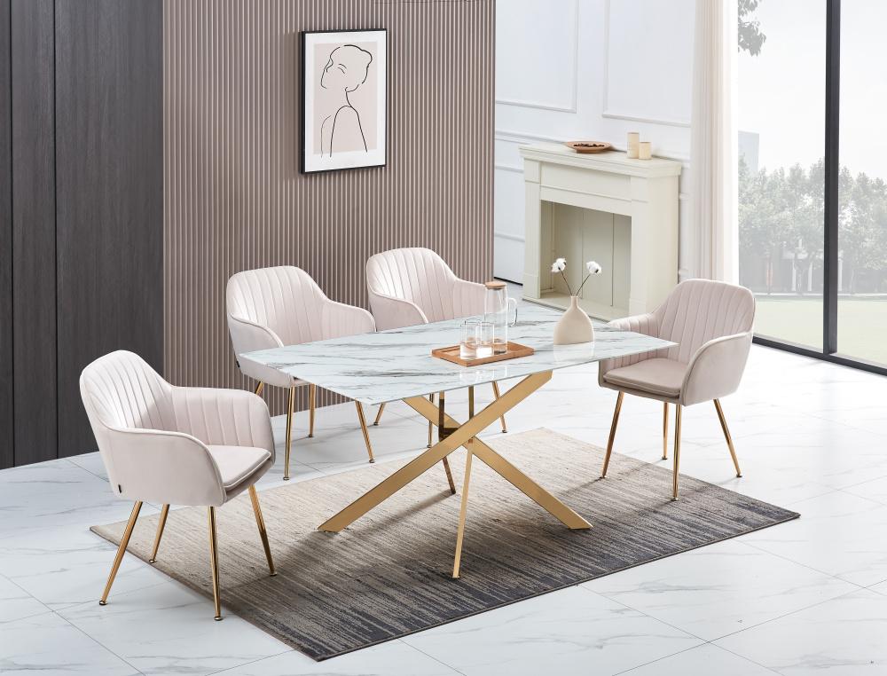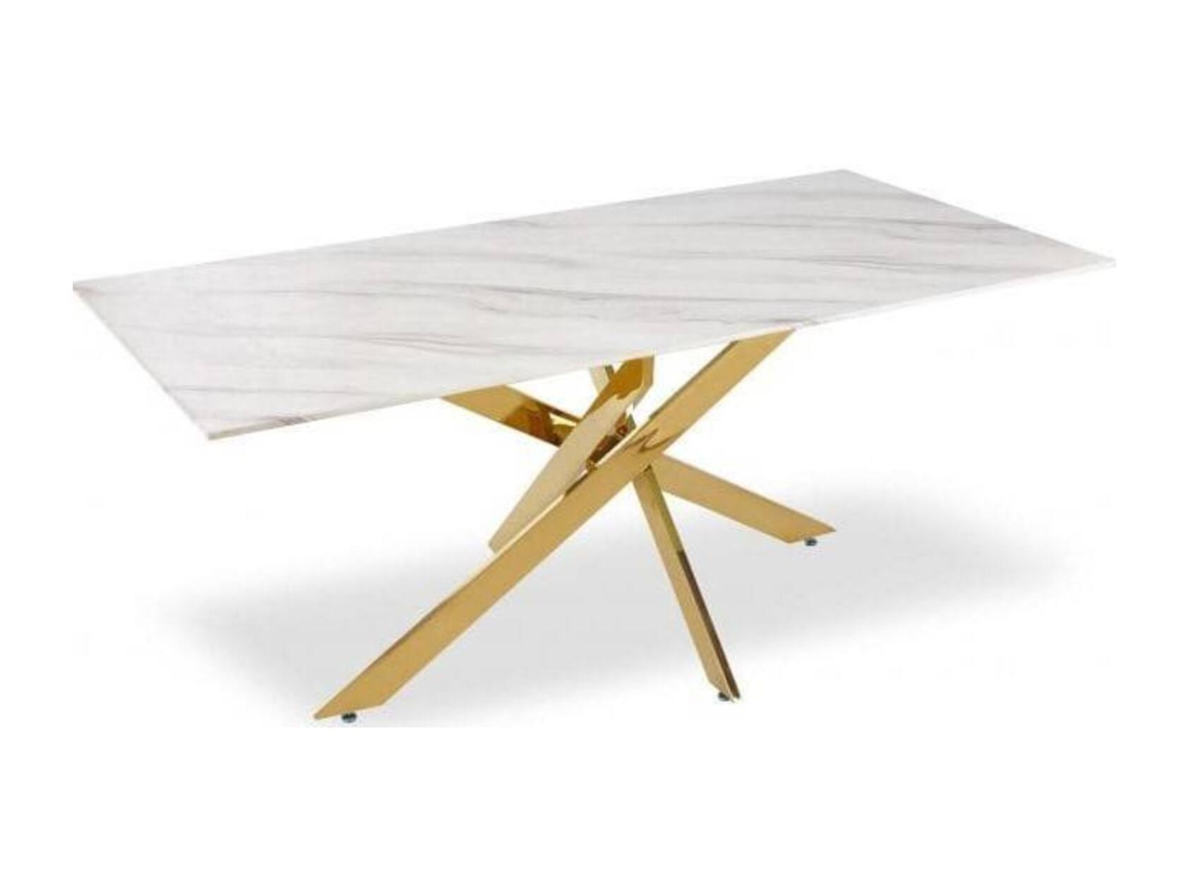 Table Repas JESSICA XXL Gold et plateau en verre 180 cm 6 à 8 couverts