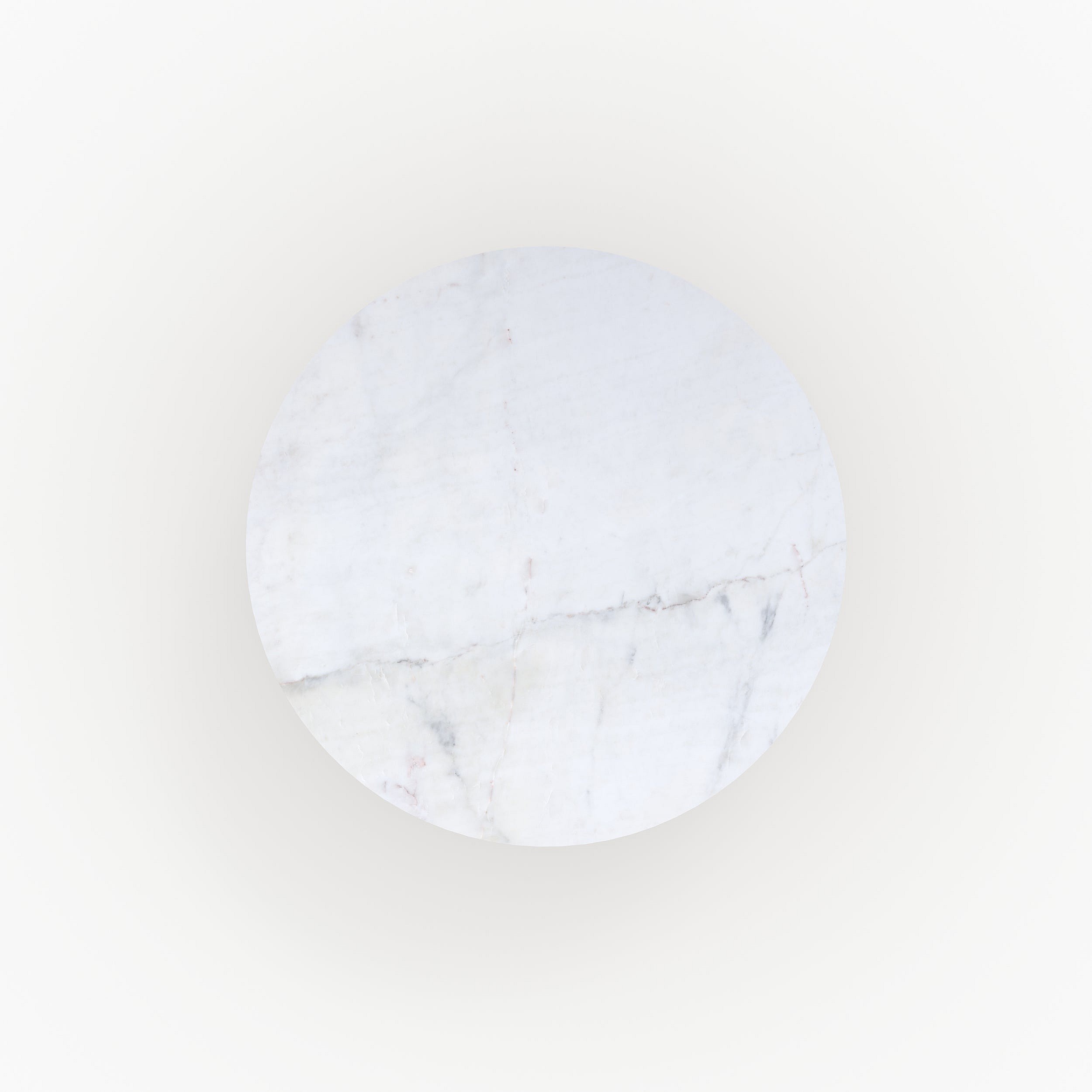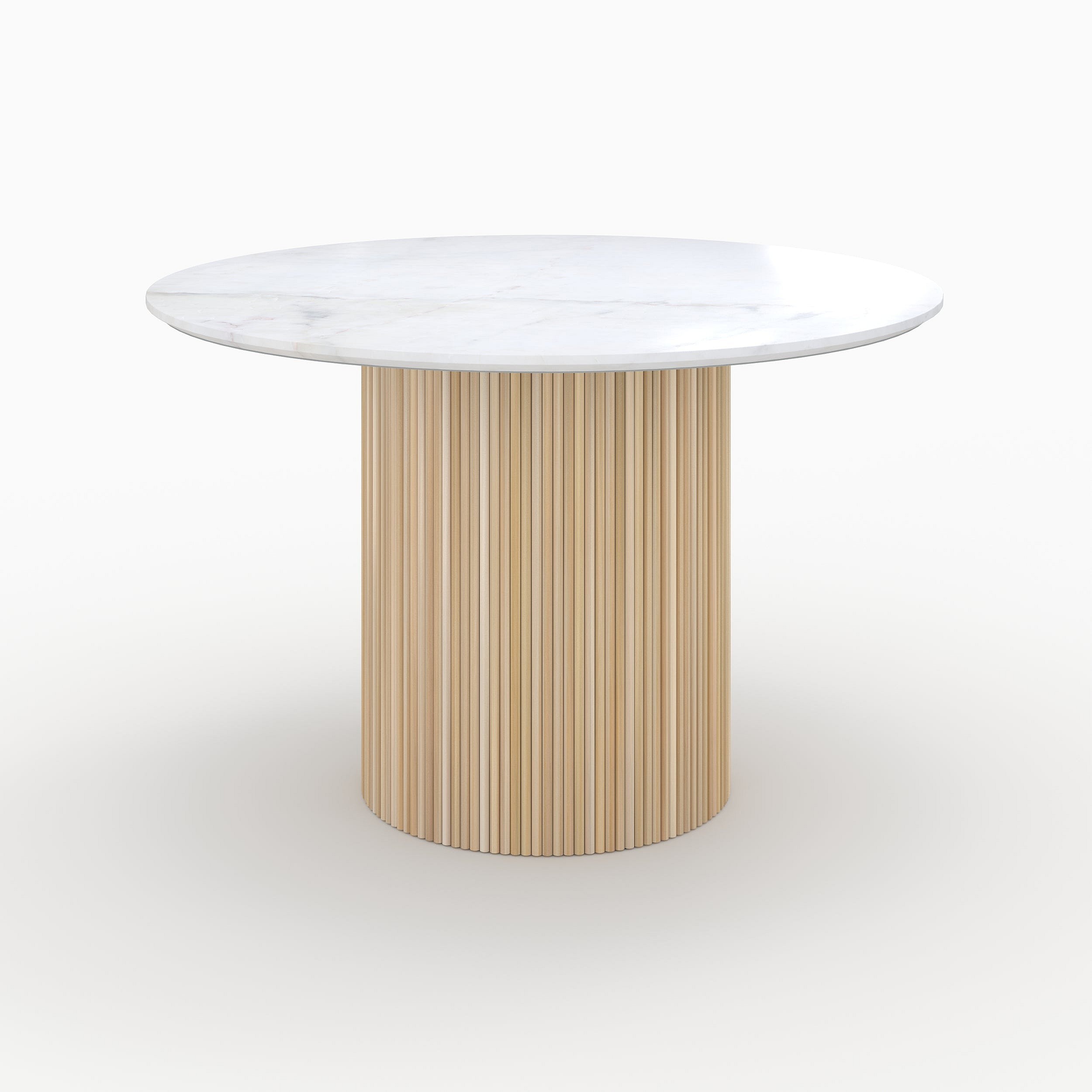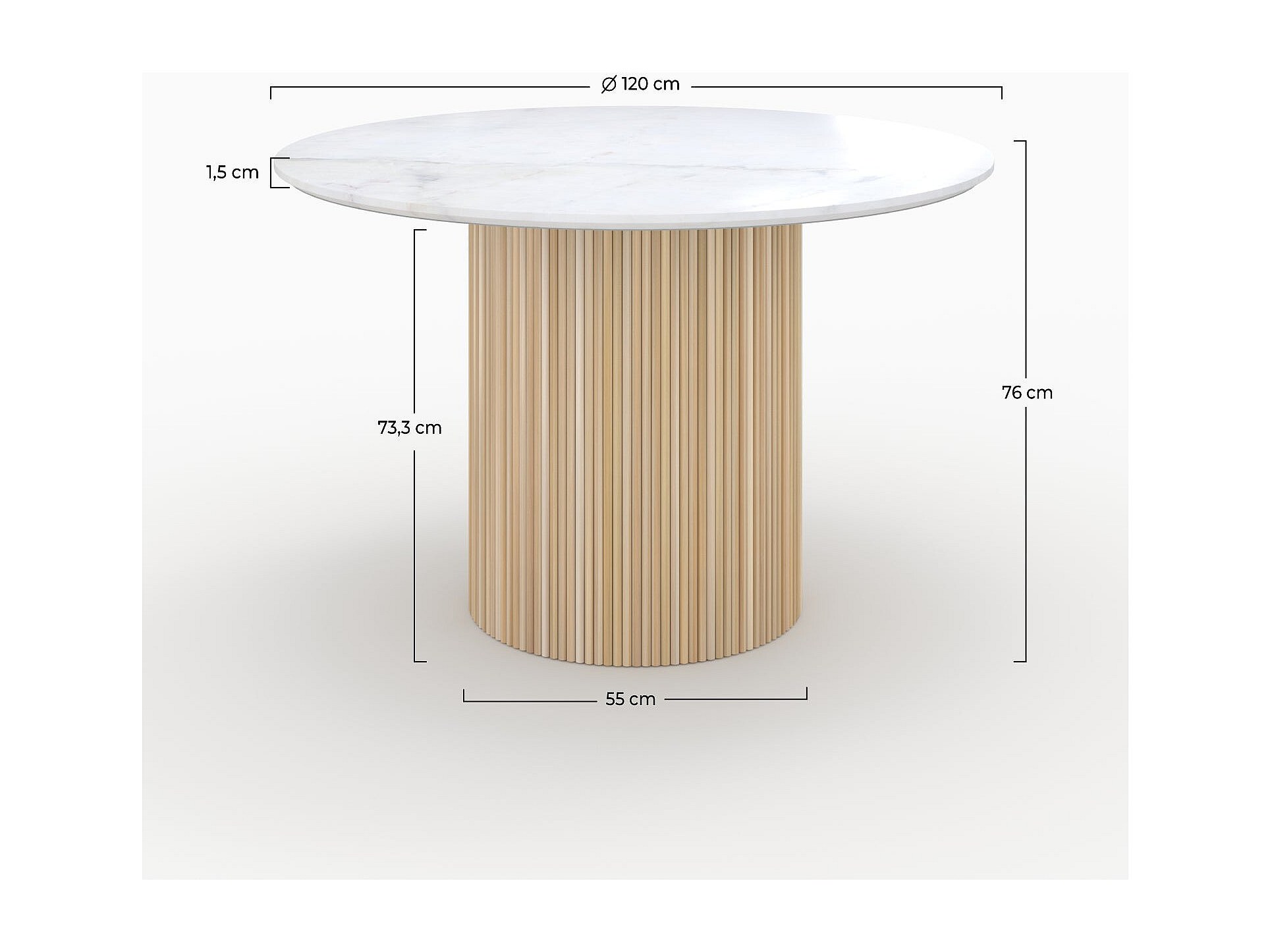 Table ronde 4 personnes en marbre blanc et bois de manguier D120 cm - Agathe