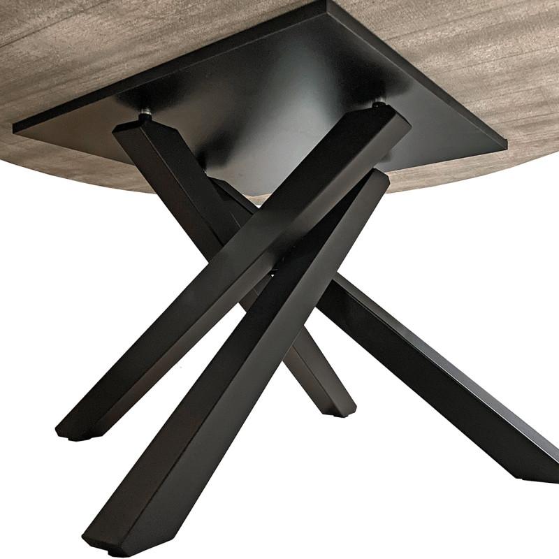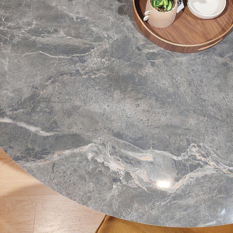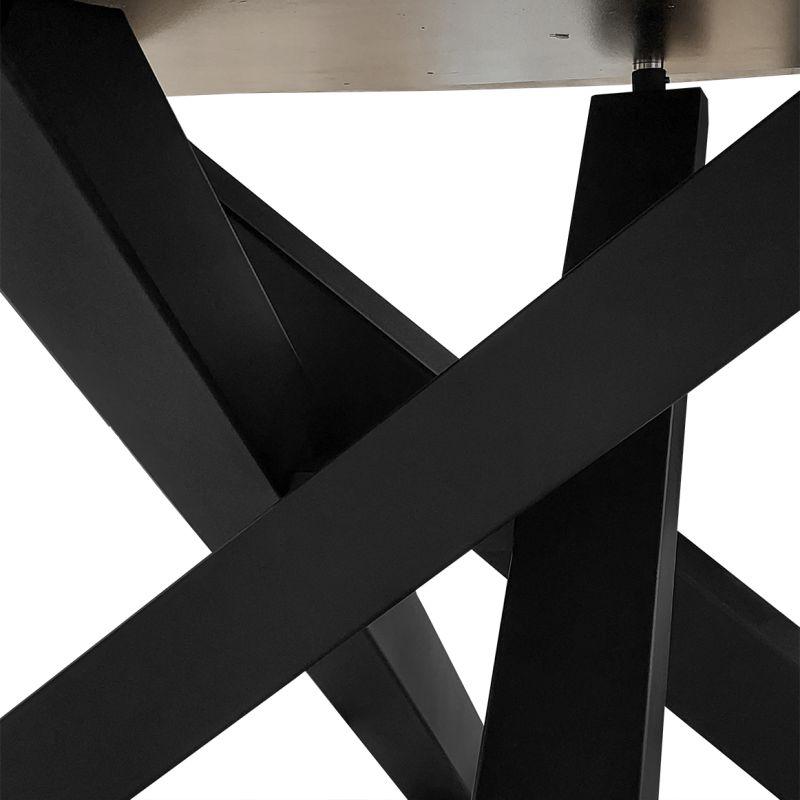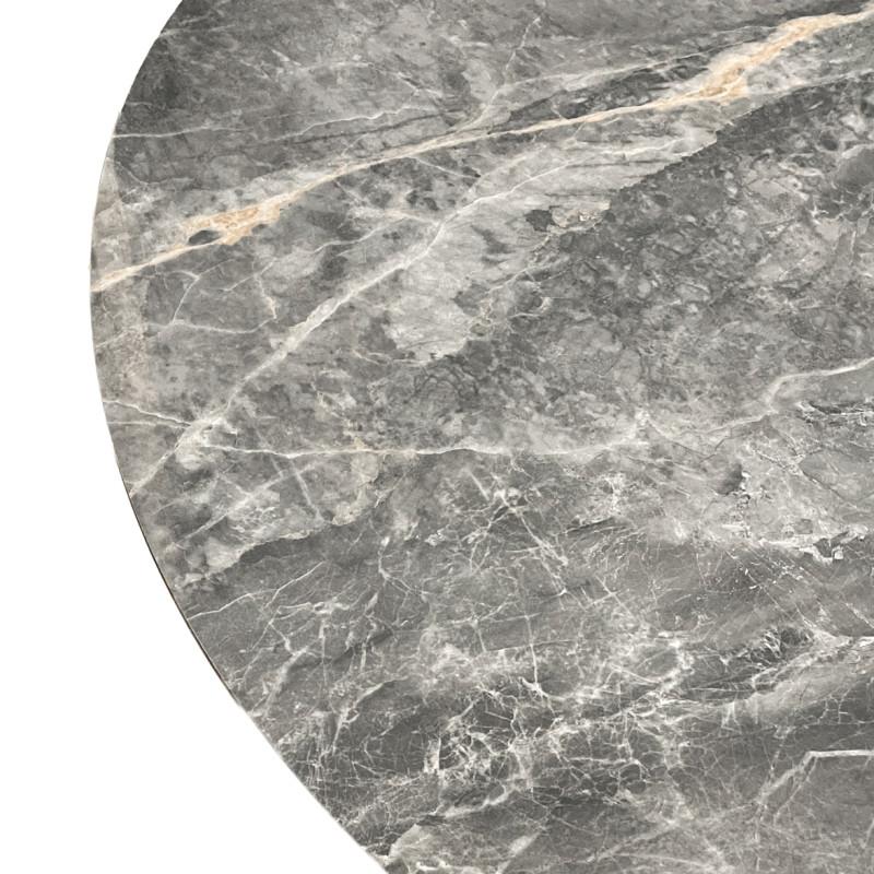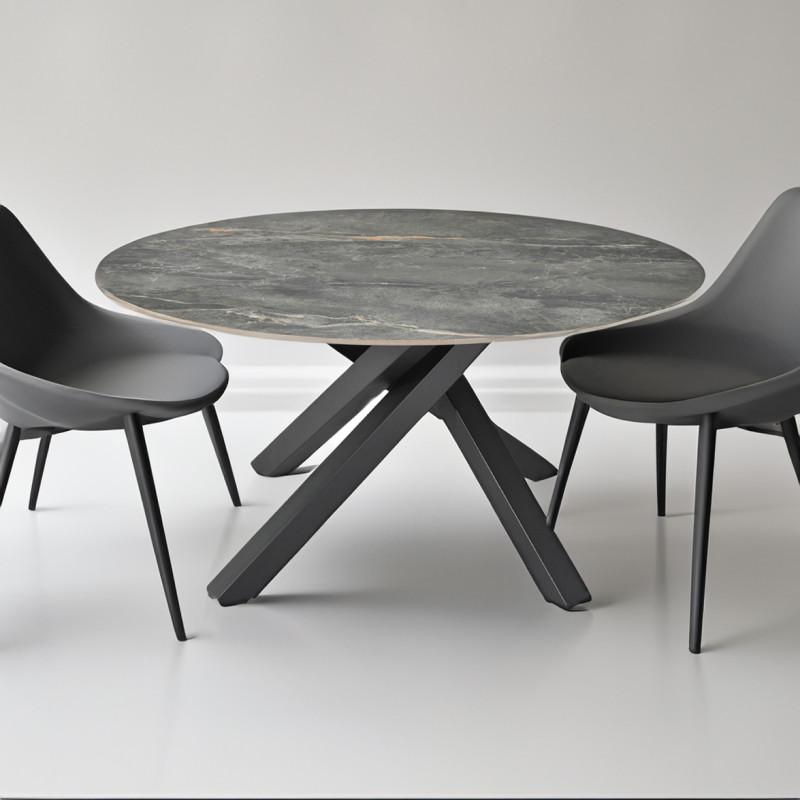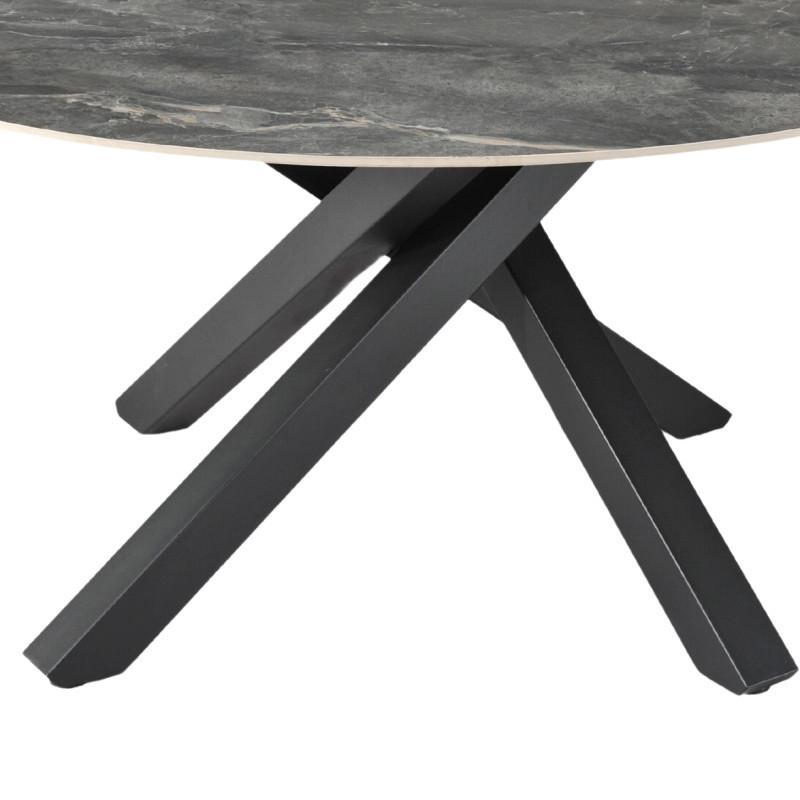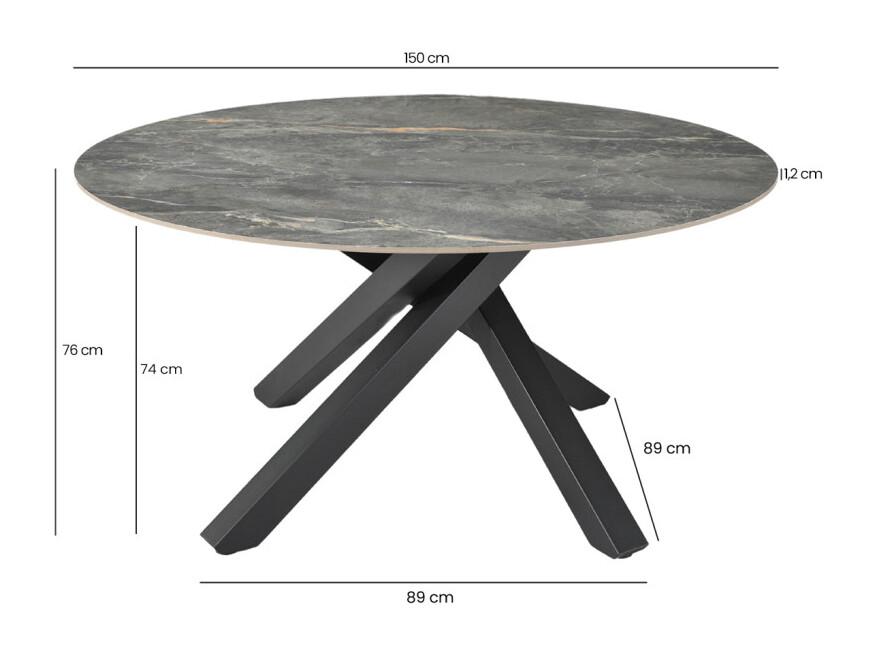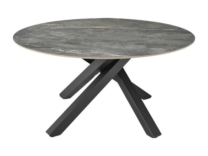 Table ronde D.150 cm céramique gris marbré et pieds métal noir – RUBY