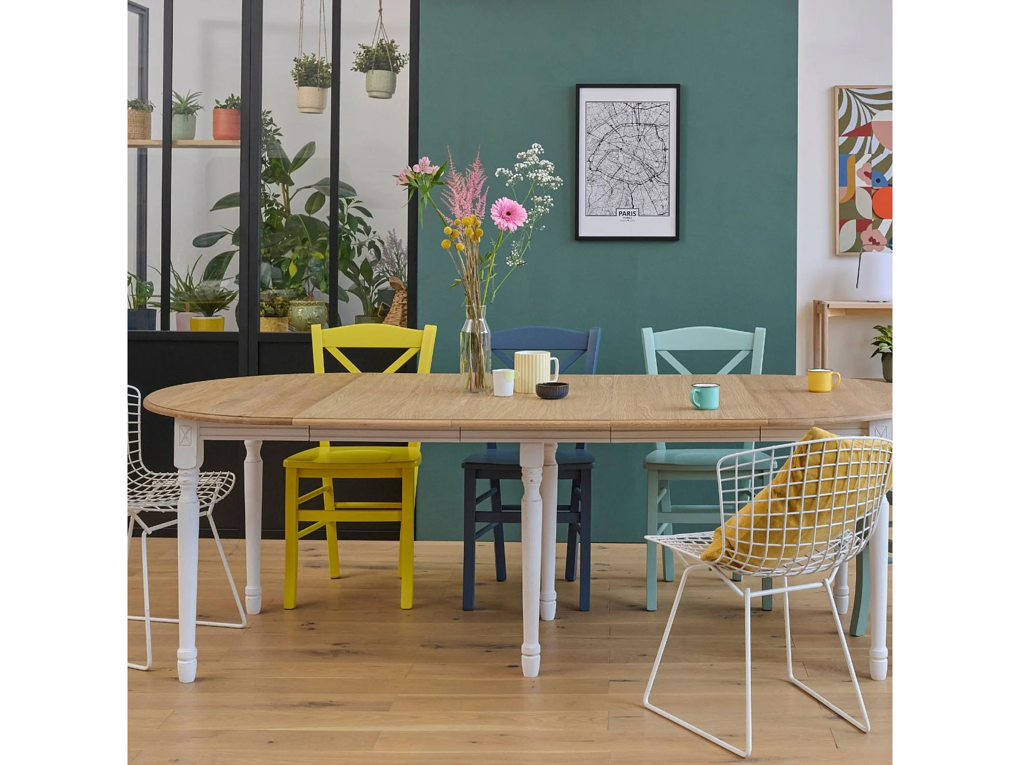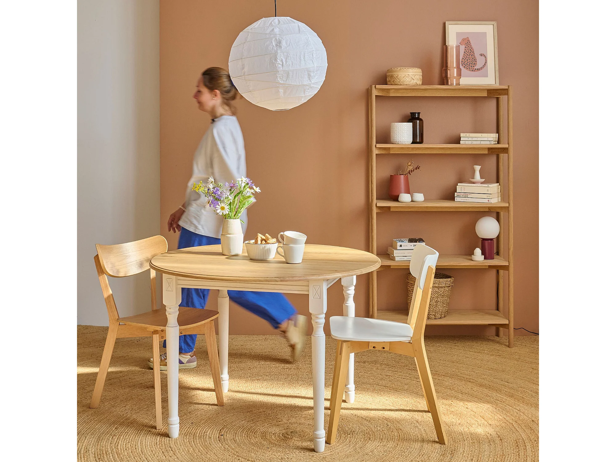 Table ronde en bois 6 pieds tournés D105 + 3 rallonges bois - VICTORIA