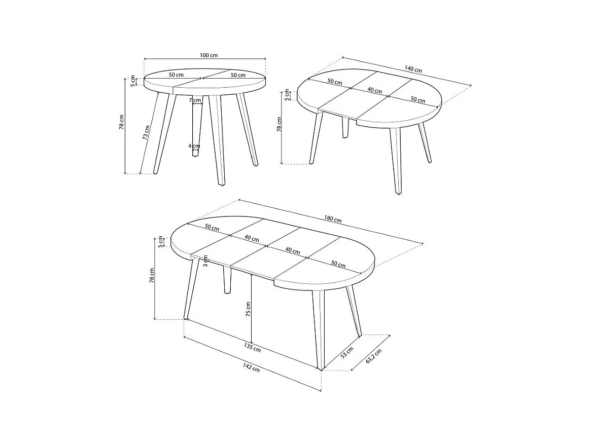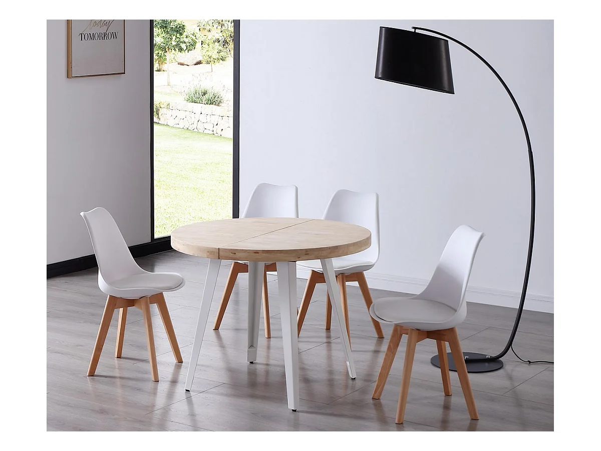 Table ronde extensible Bali en chêne nordique blanc 76x100-180 cm