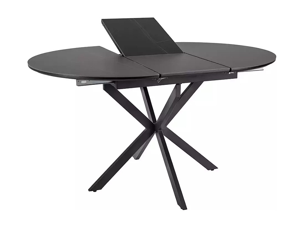 Table ronde extensible céramique noire 6 personnes pied métal MILANOZ3