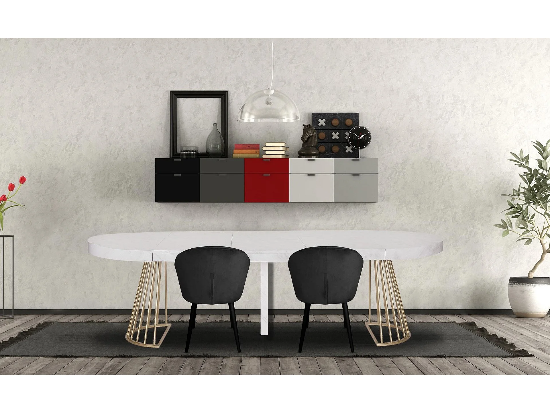 Table de Repas Extensible "Resoa" 110-260cm Effet Marbre