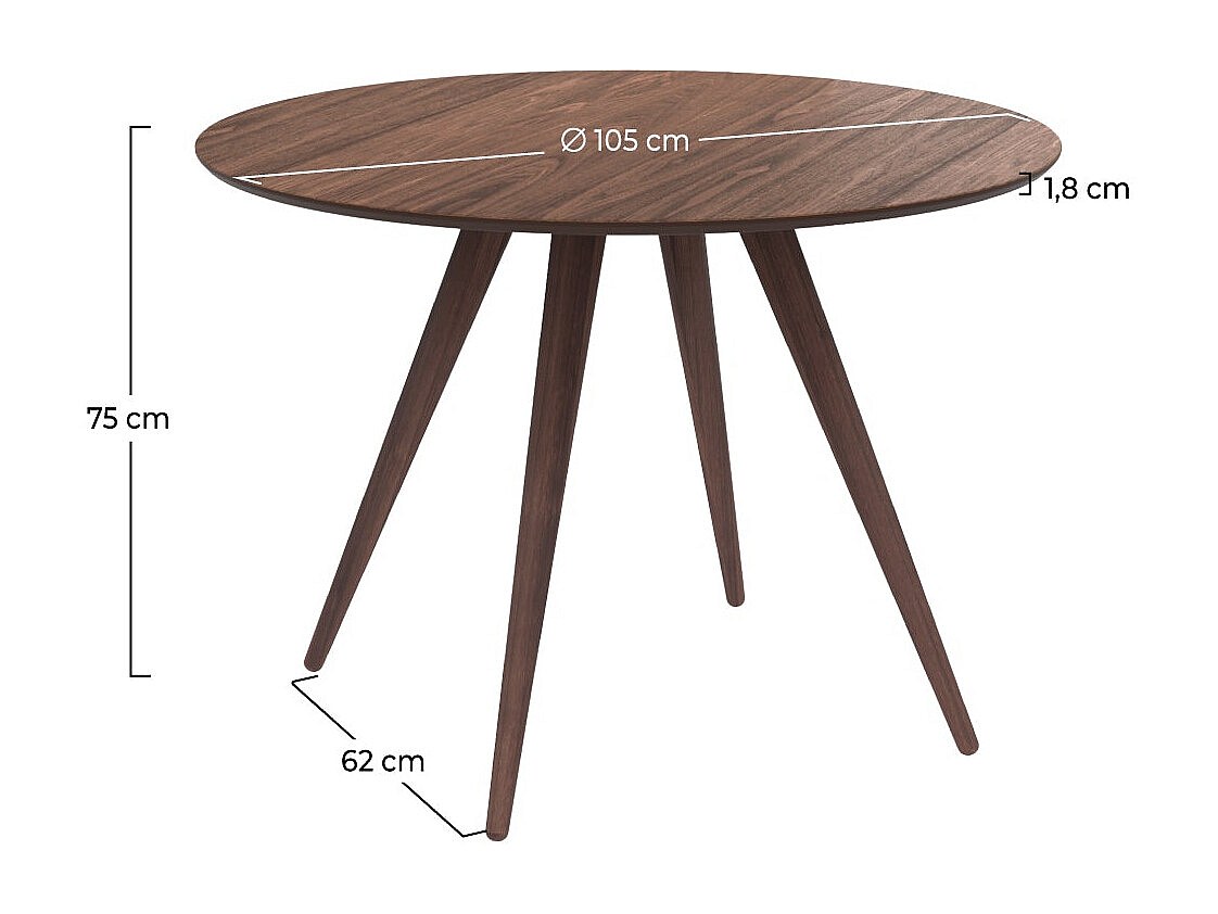 Table ronde 4 personnes en bois foncé finition noyer D105 cm - Liwa