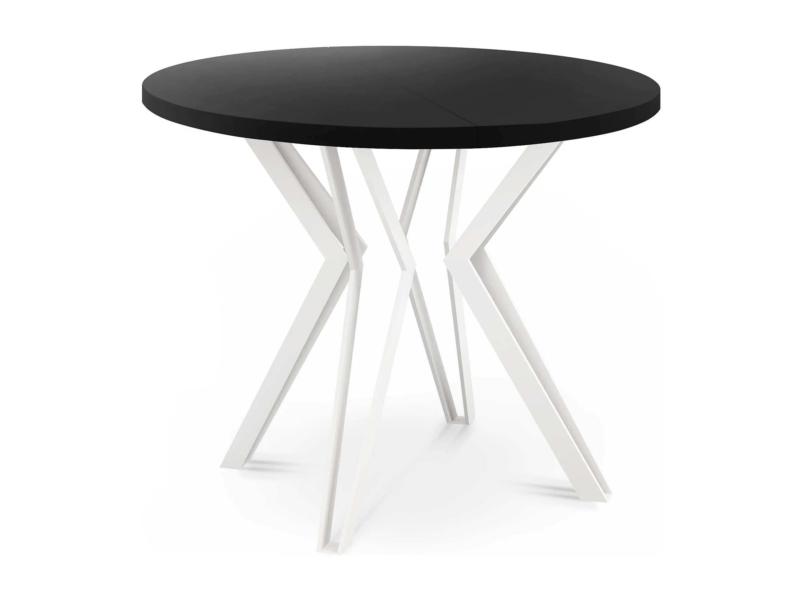 Table Ronde Salle à Manger - 120/196 cm de Diamètre - Table à Rallonges Avec Pieds en Métal Blanc - Style Industriel - Compacte - Noir
