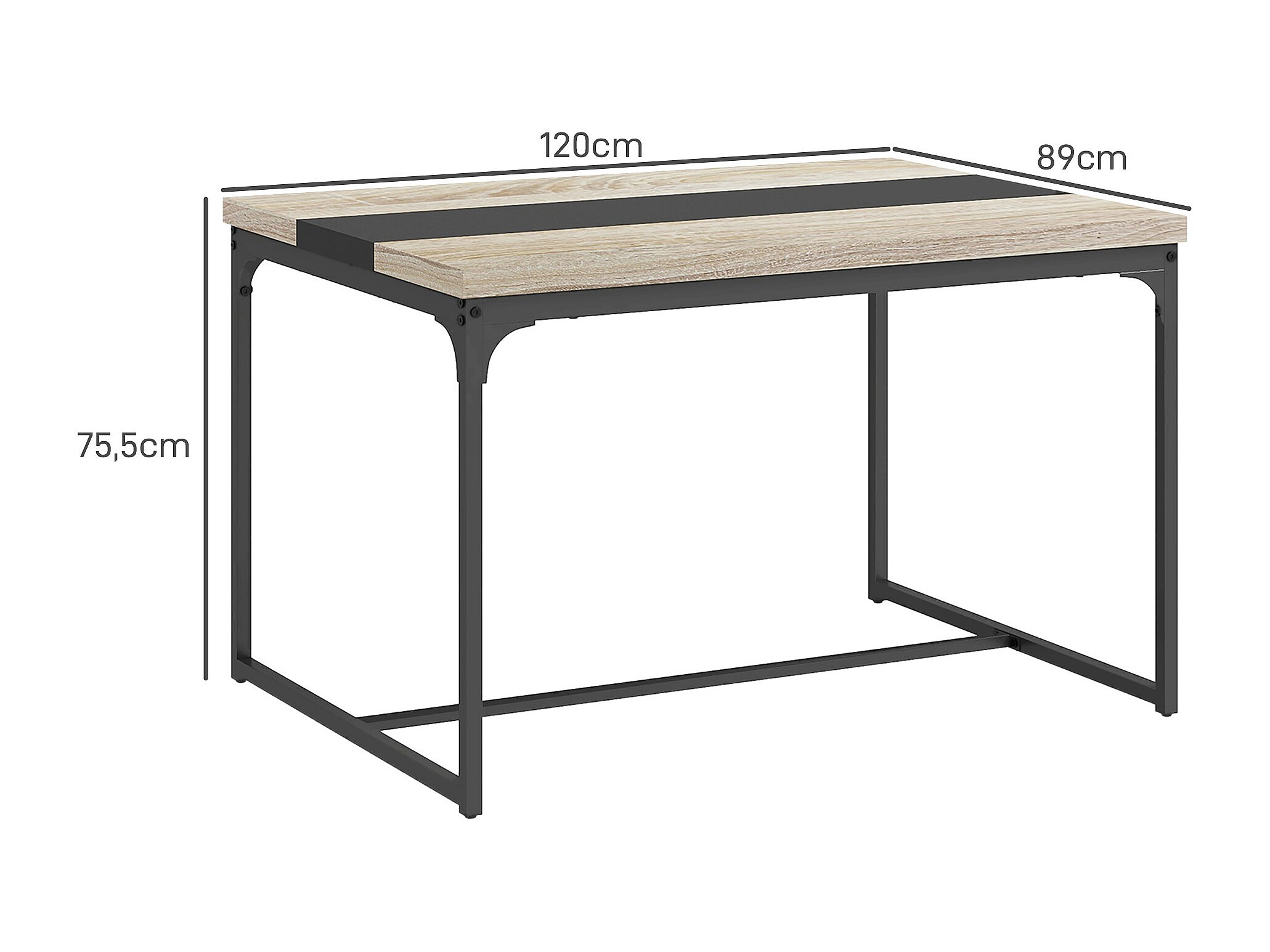 Table salle à manger 6 places - style industriel - dim. 120L x 89l x 75,5H cm - métal noir aspect bois