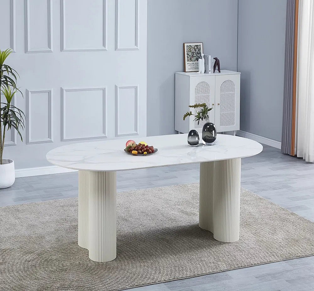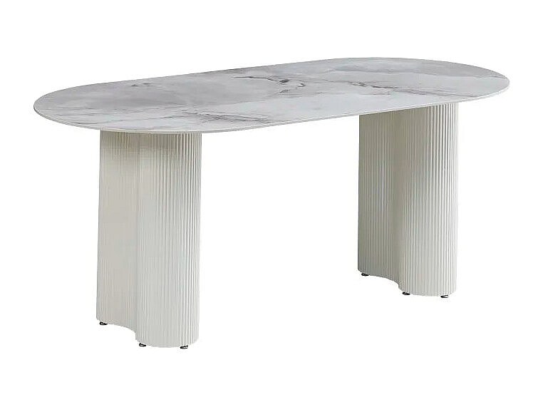 Table VENEZIA plateau céramique marbré blanc L 180 cm