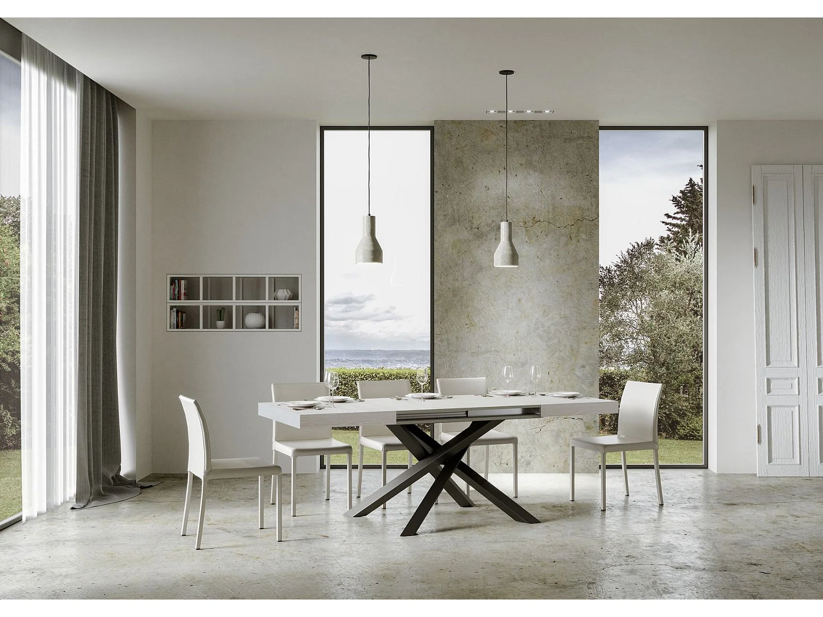 Table extensible 160/264x90 cm Volantis frêne blanc pieds anthracite