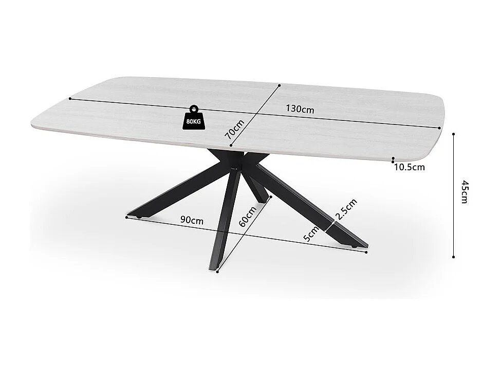 Tables basses ARVENA – Table basse rectangulaire 130x70 cm – 5 coloris pierre et marbre – Design contemporain