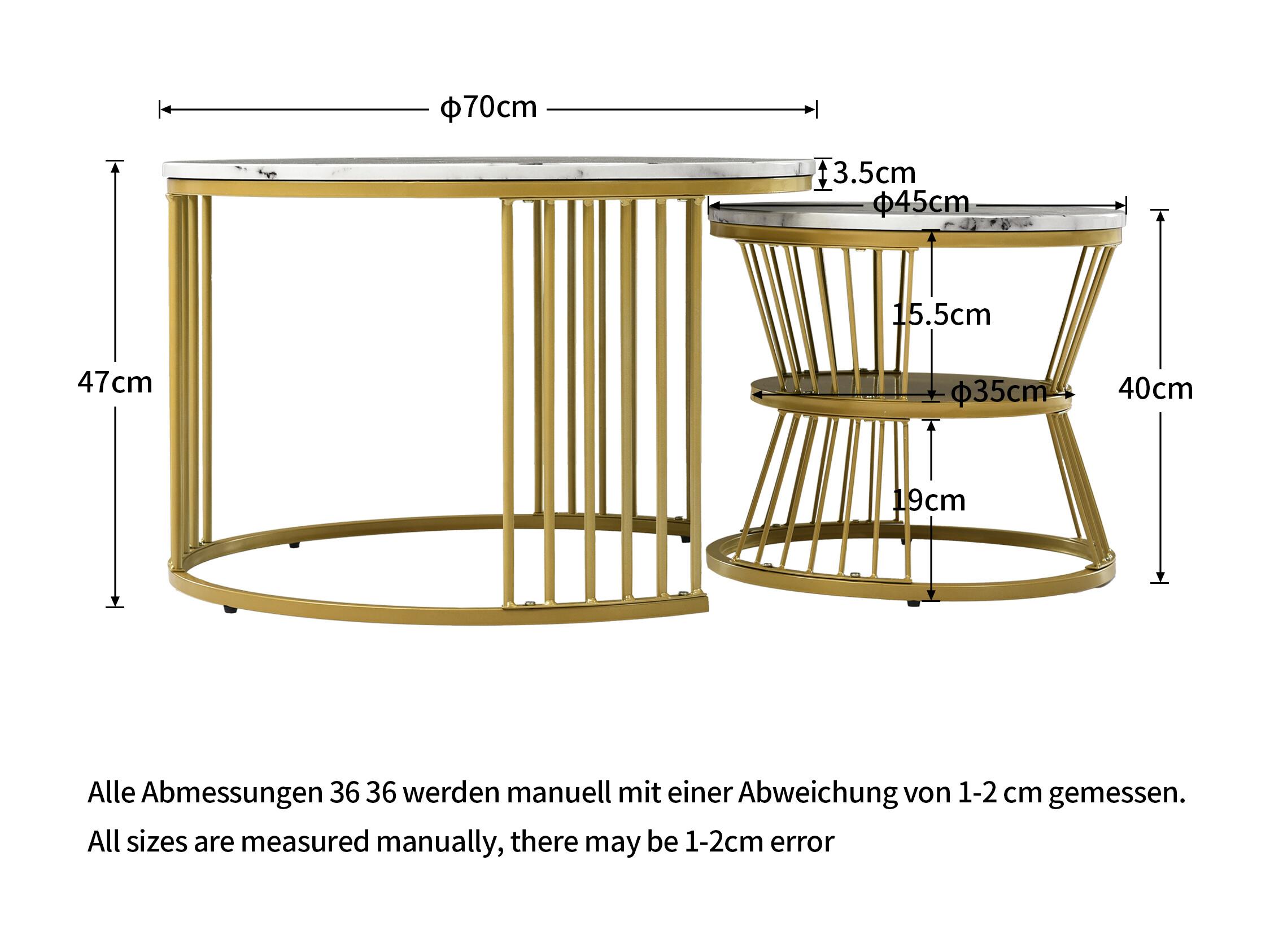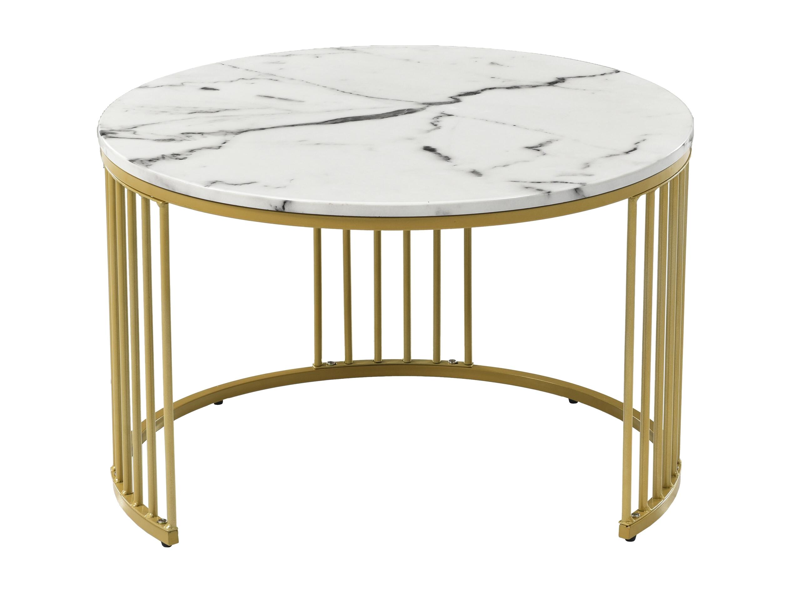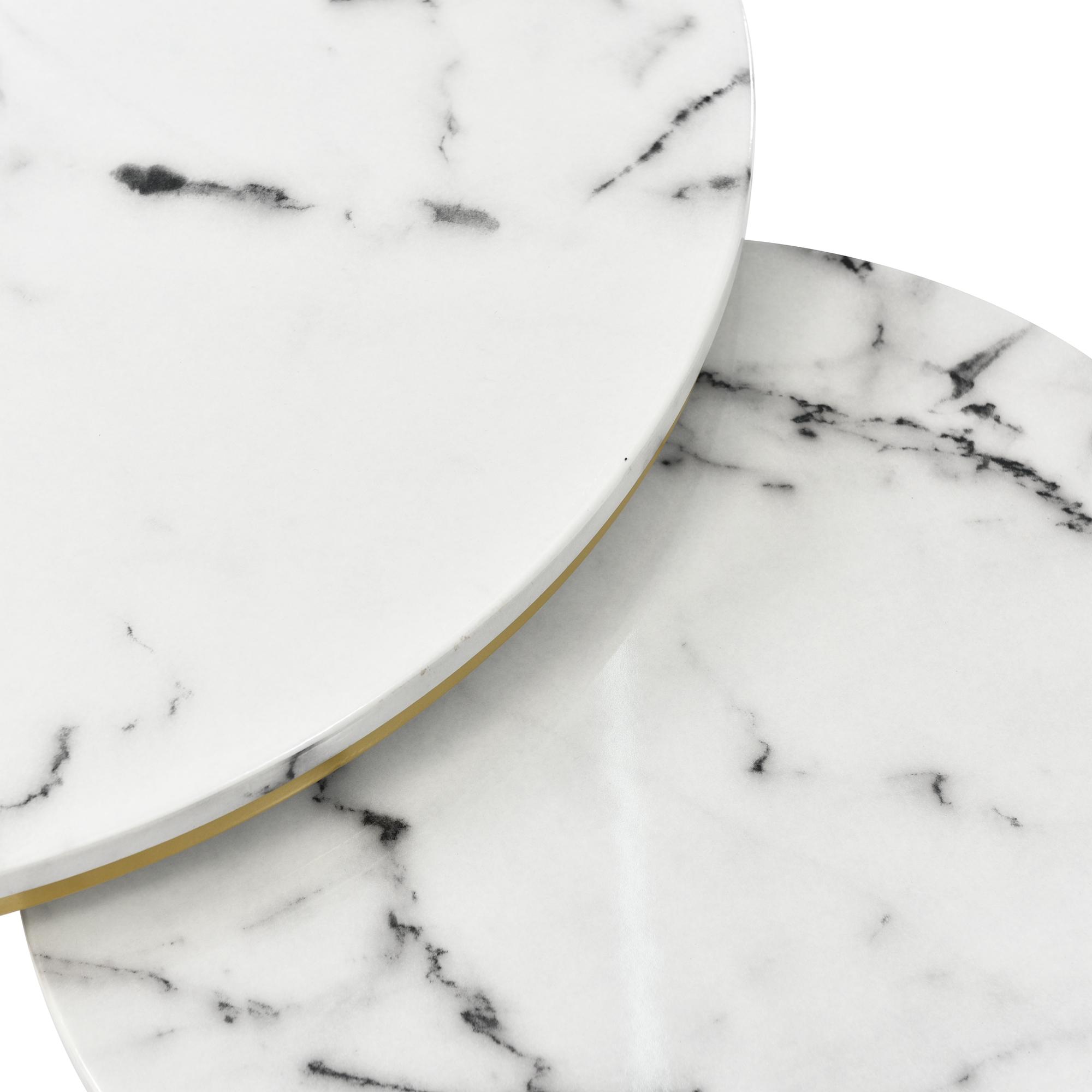 Tables basses gigognes 2 en 1 rond marbre placage - blanc et doré