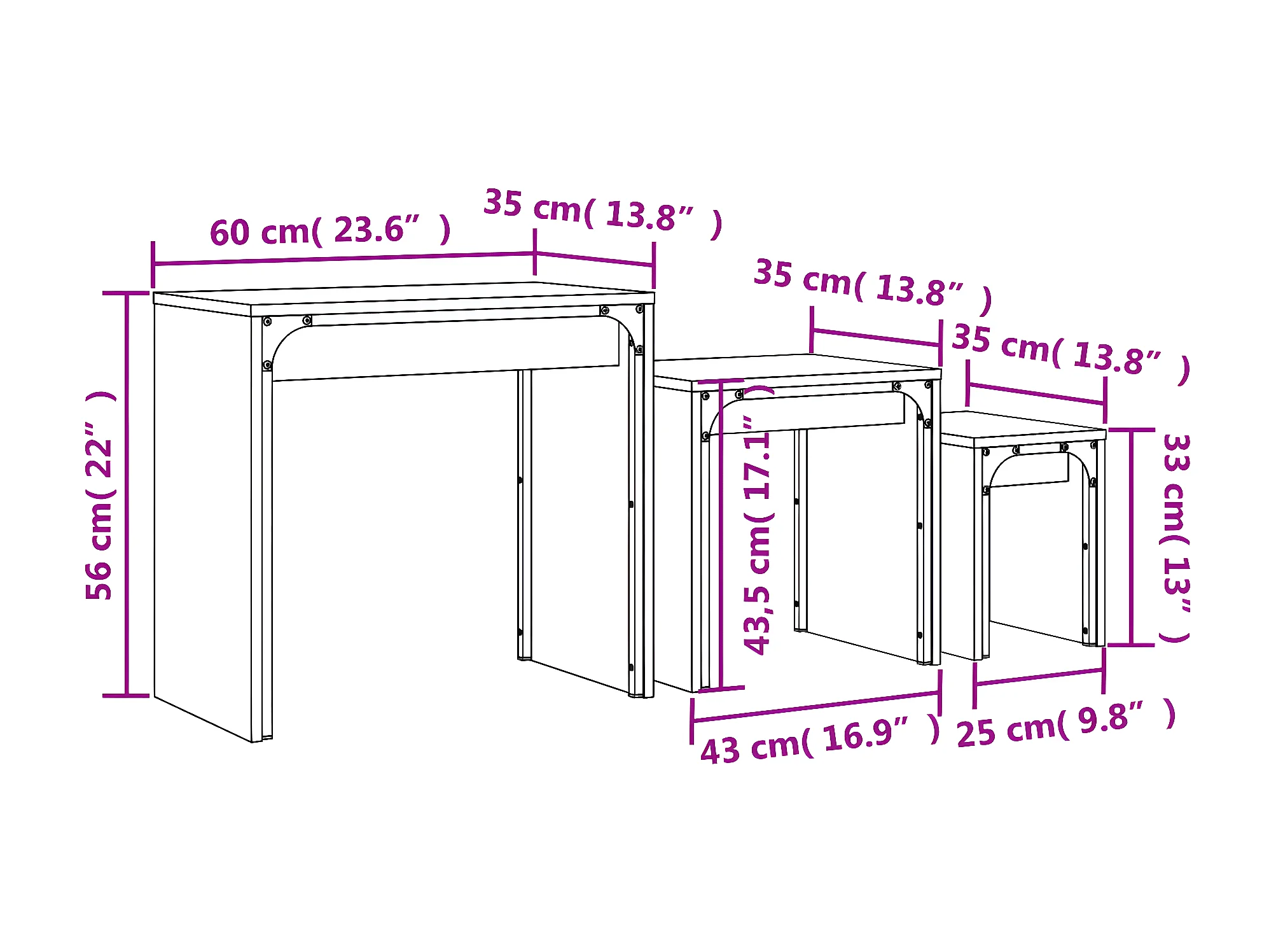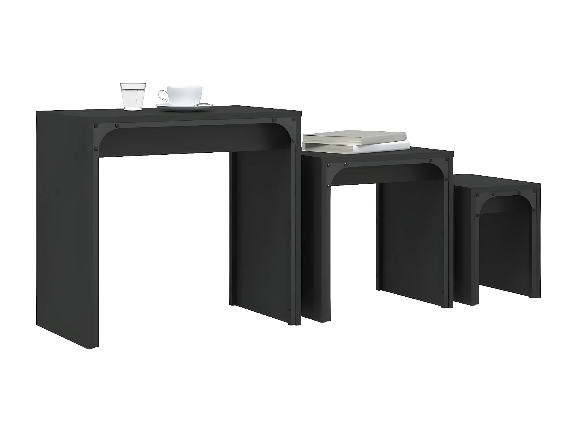 Tables basses gigognes 3 pcs noir bois d'ingénierie