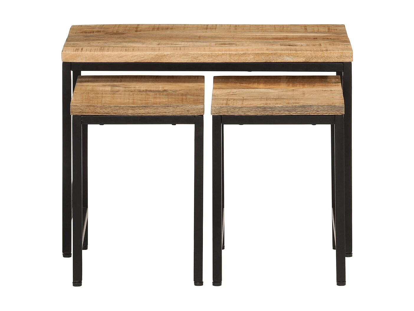 Tables basses gigognes 3pcs bois de manguier massif brut et fer FR725180