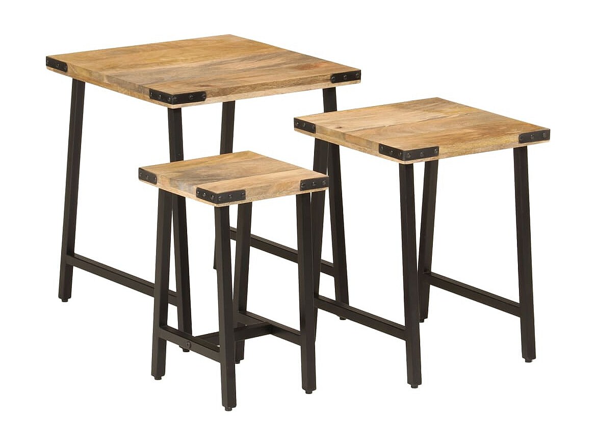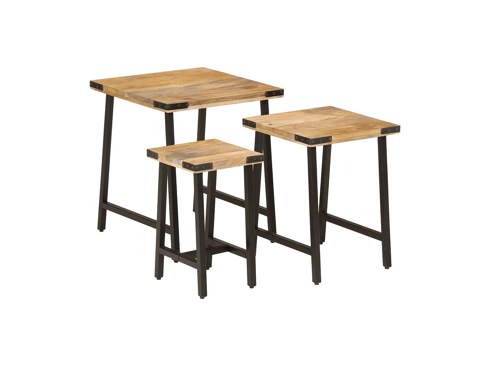 Tables basses gigognes 3 pièces bois de manguier massif brut et fer