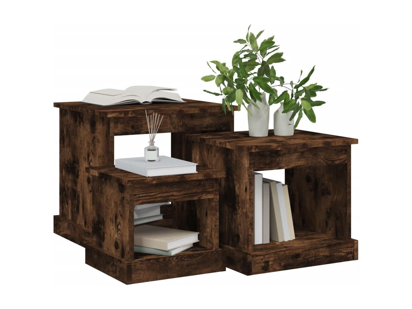 Tables basses-Table d'appoint 3 pièces chêne fumé bois d'ingénierie SHL5277