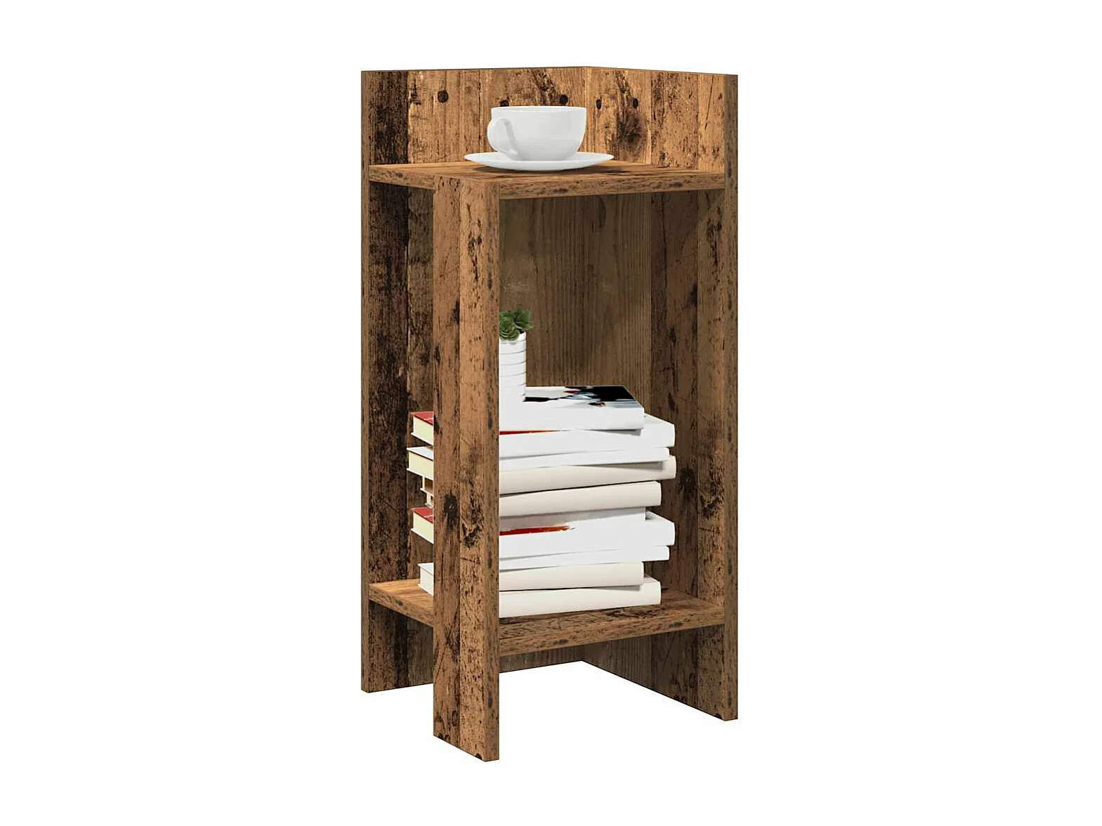 Tables d'appoint 2 pièces avec étagère vieux bois 25,5x27x60 cm