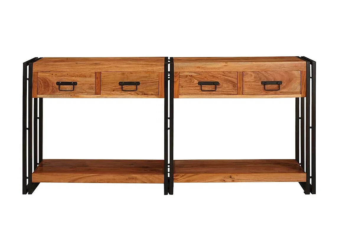 Tables d'appoint avec tiroir 2 pièces Marron Bois d'Acacia Massif