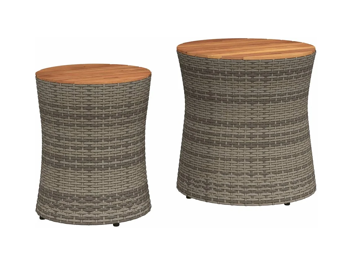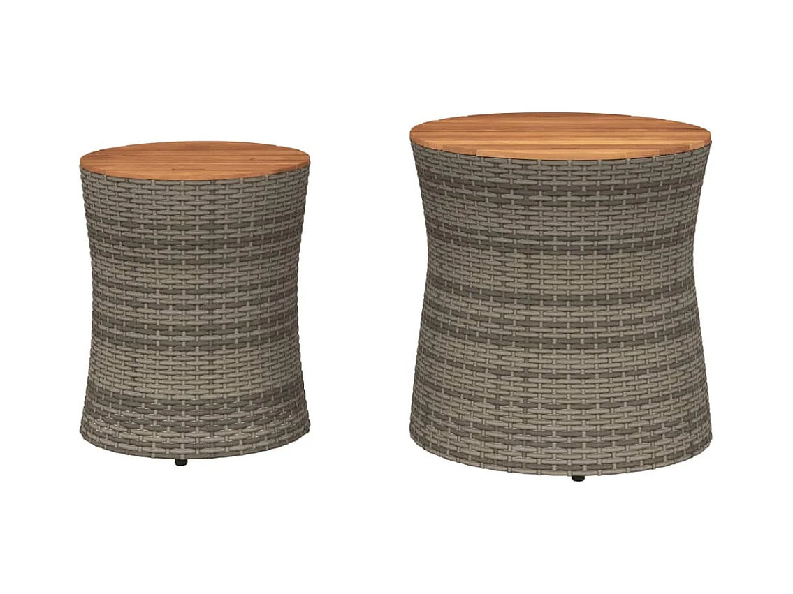 Tables d'appoint de jardin 2 pcs dessus en bois gris poly rotin FR856931