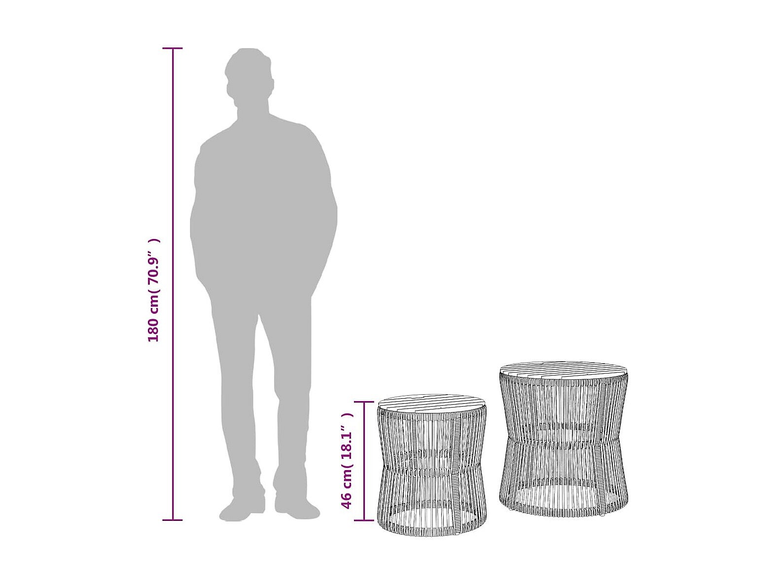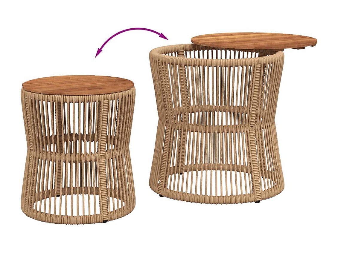 Tables d'appoint de jardin 2pcs dessus en bois beige poly rotin