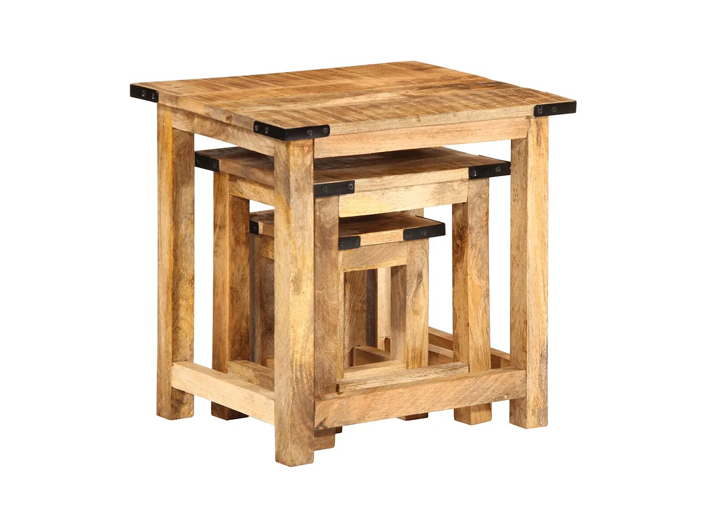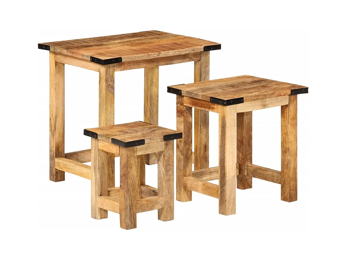 Tables d'appoint gigognes 3 pcs bois de manguier massif brut