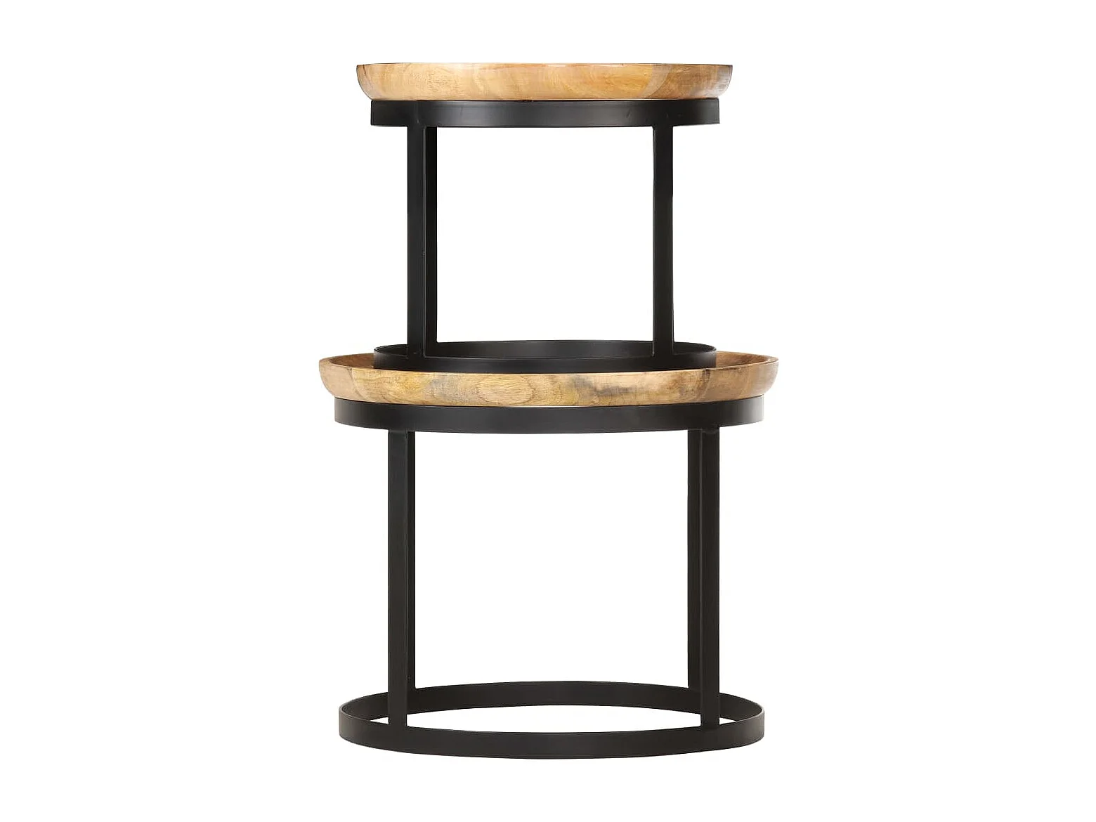 Tables basses rondes 2 pcs Bois de manguier solide et acier GHR64837